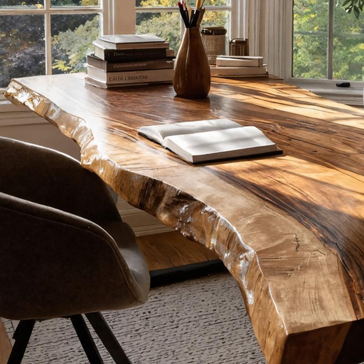 This desk is meticulously handcrafted from carefully selected solid monkey pod wood, showcasing flowing live edges, rich grain movement, and natural variations that make each piece one-of-a-kind. Designed with a timeless silhouette, it blends artisanal craftsmanship with enduring functionality, suitable for both contemporary and rustic-inspired spaces.