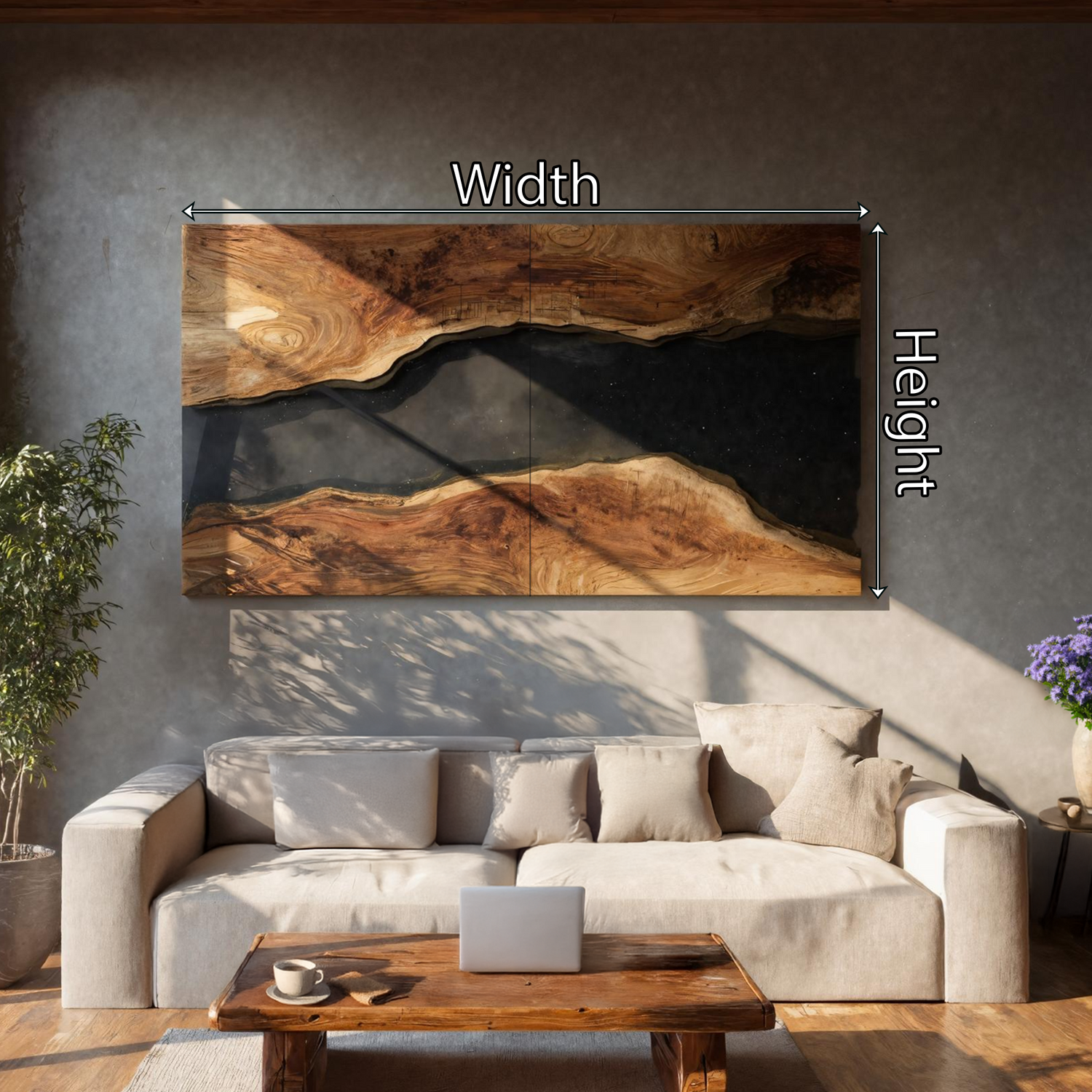 This wall-mounted sculpture blends fluid, organic contours with minimalist elegance. Hand-carved from solid hardwood, the rhythmic folds resemble ocean tides frozen in motion. The golden-toned wood grain is accentuated by deep charcoal edges, creating a striking interplay of warmth and contrast. Designed with a hidden mount, the piece floats seamlessly against your wall, enhancing its sculptural presence.