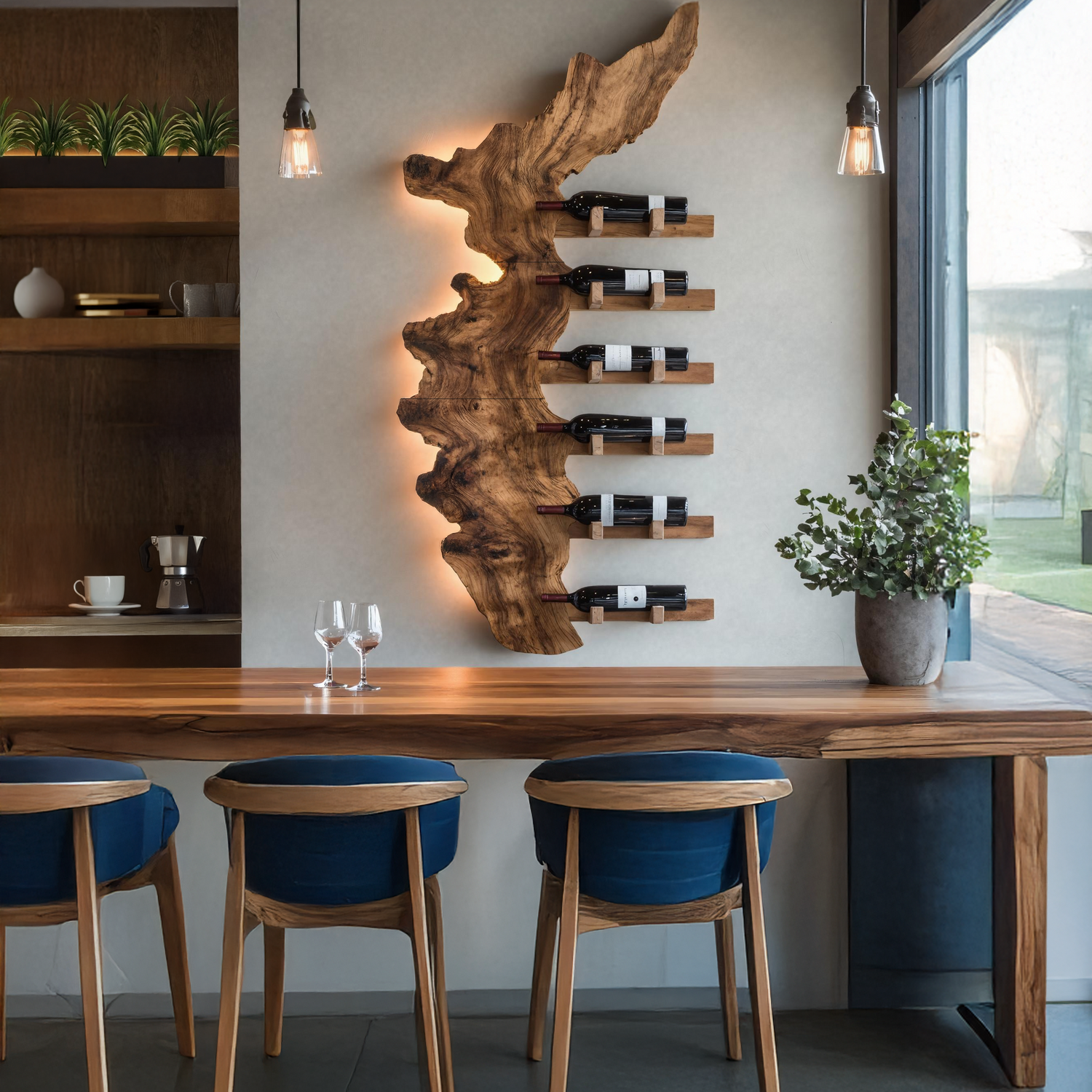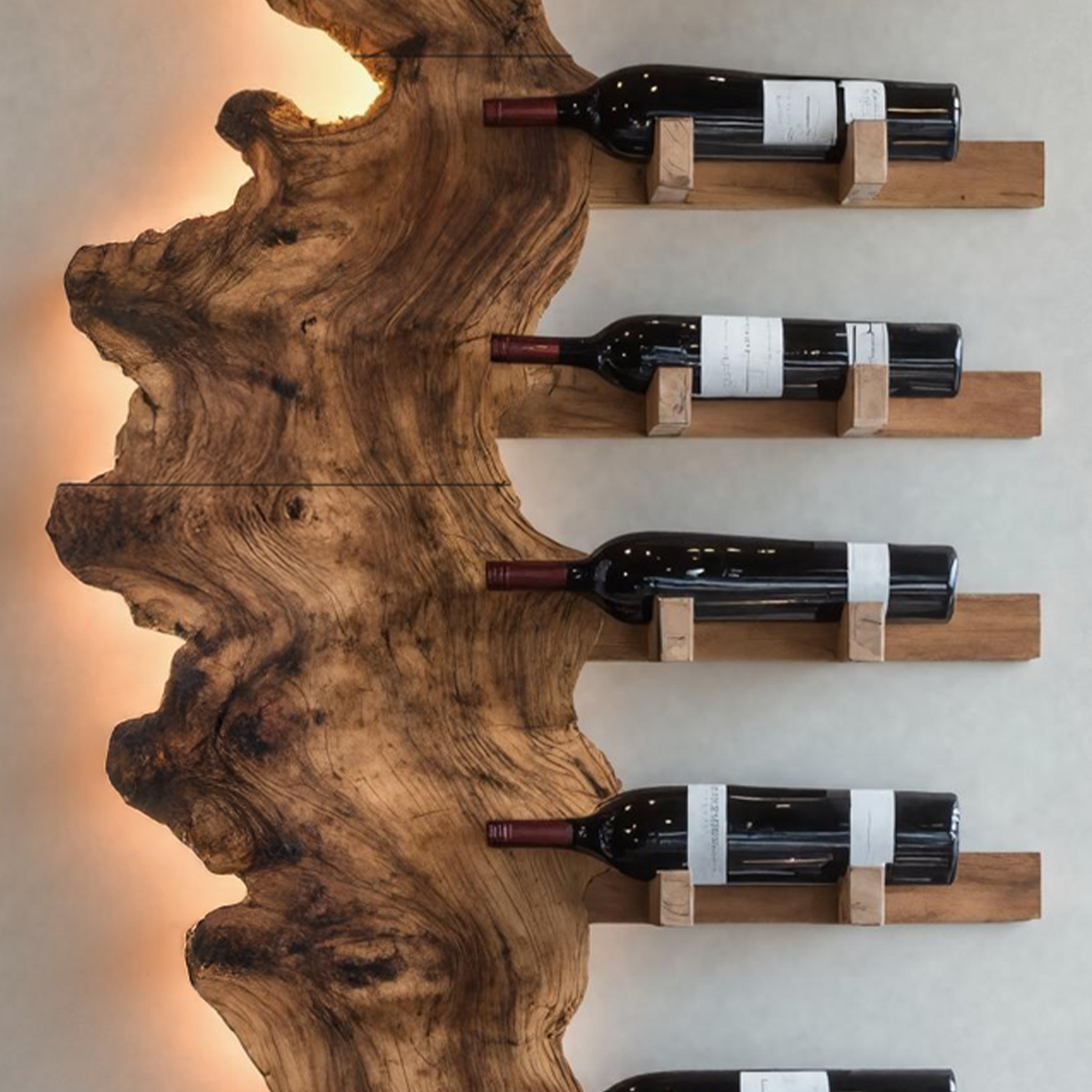 Each wine cradle is individually handcrafted from solid Monkeypod wood, known for its rich grain patterns and organic variations. Every curve and surface is shaped by hand, creating a unique piece with natural warmth and artisanal character.