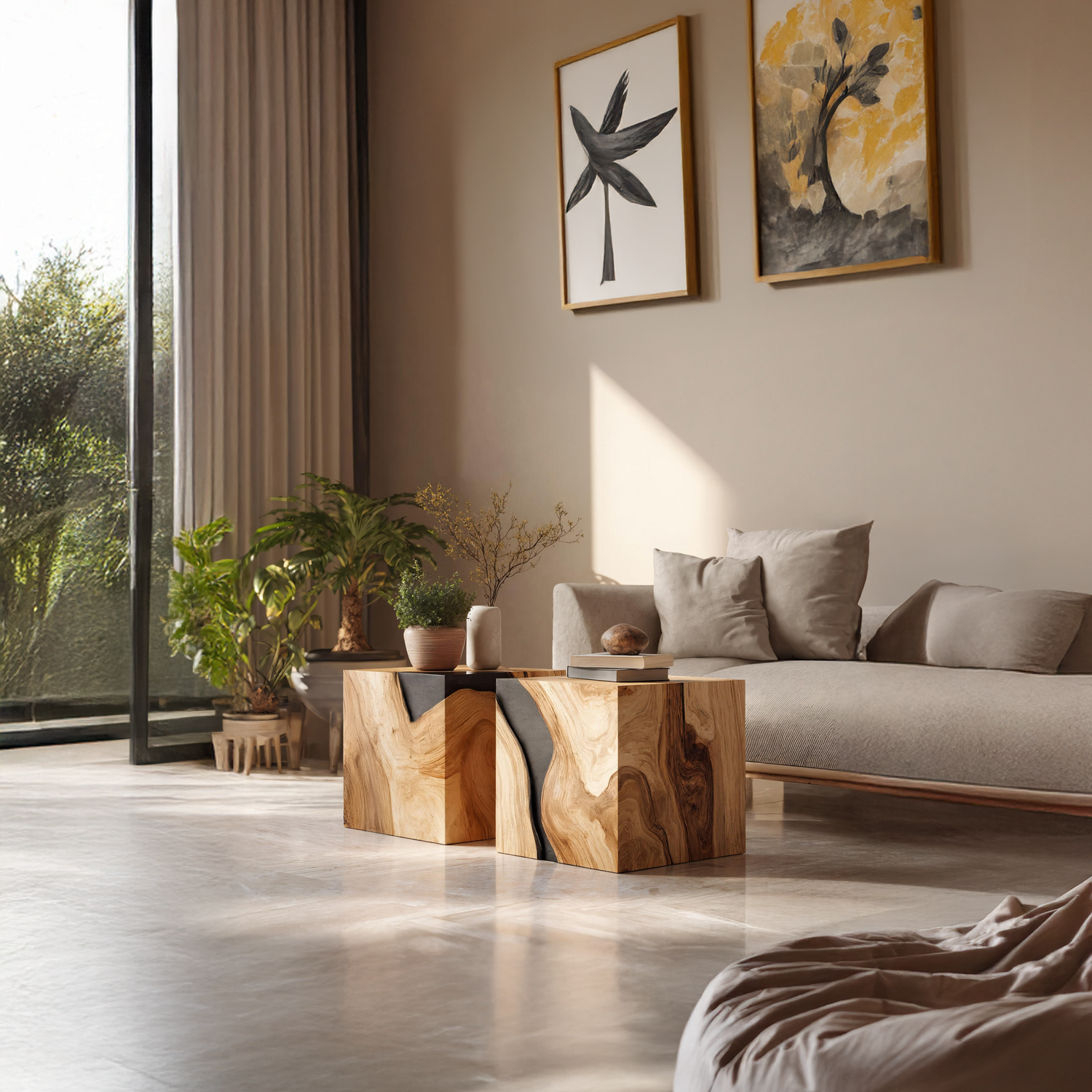 - Each table is entirely handcrafted, ensuring every piece is one-of-a-kind with its own distinctive tones, textures, and imperfections shaped by nature.