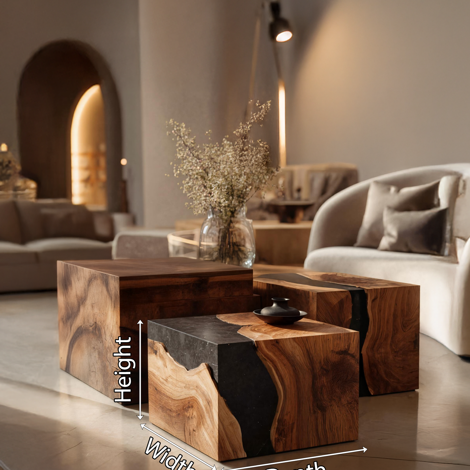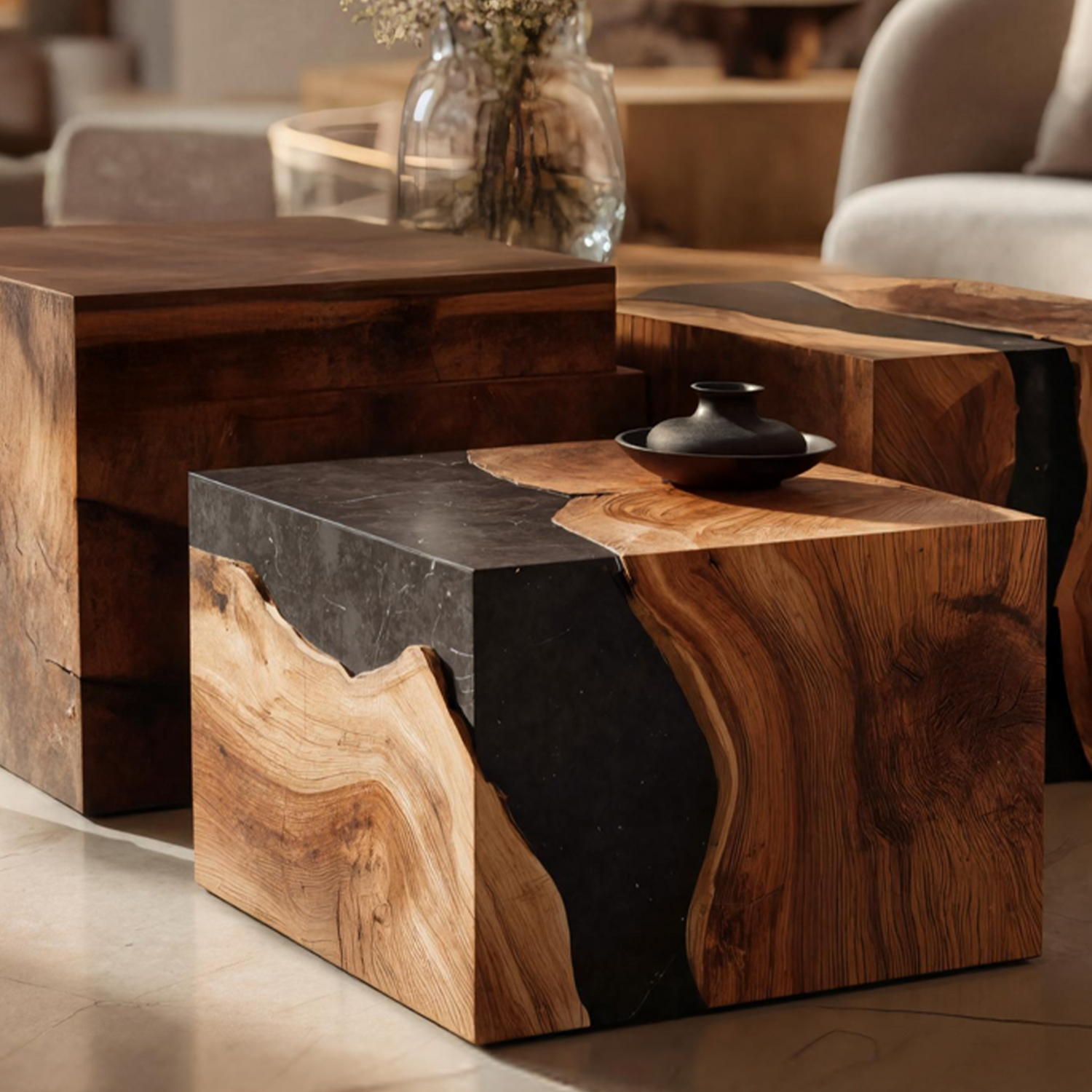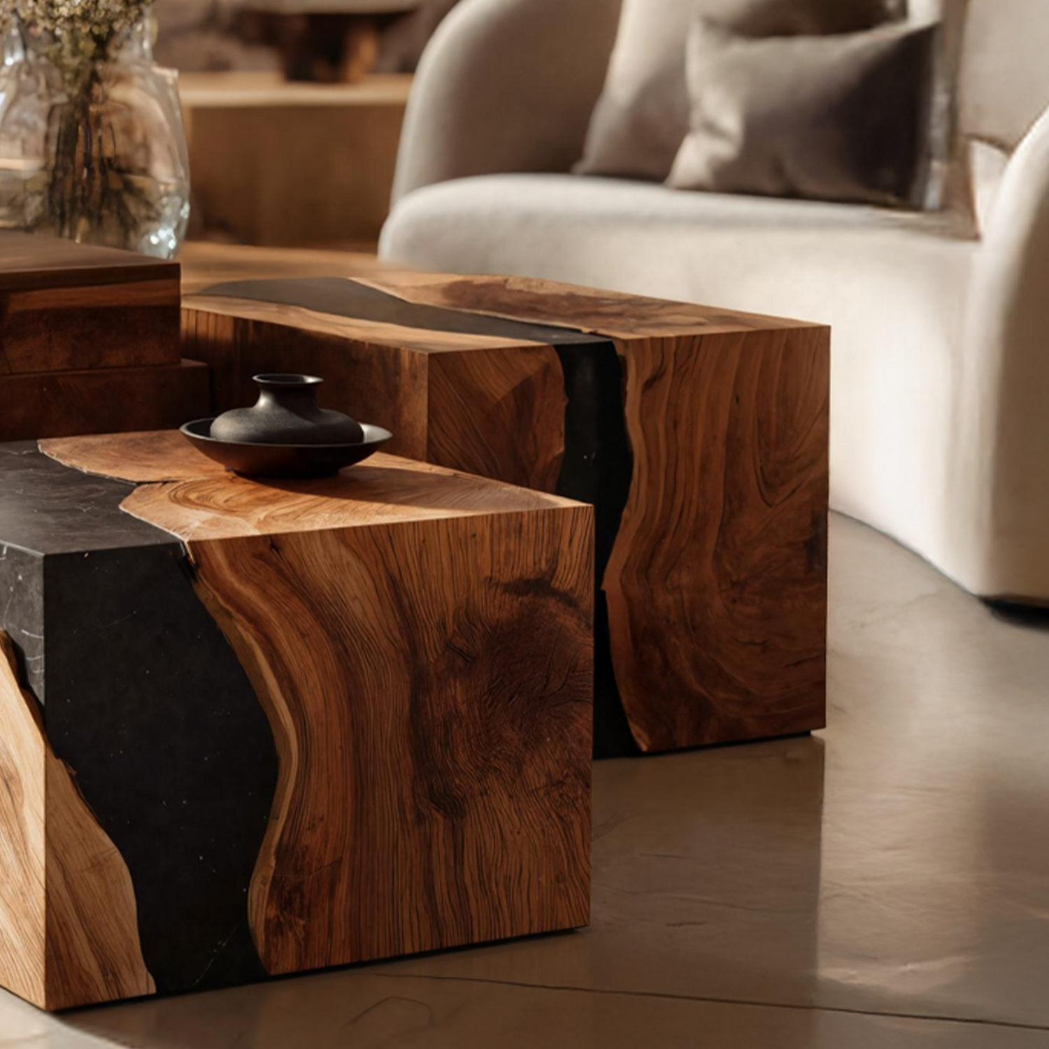 - Each table is entirely handcrafted, ensuring every piece is one-of-a-kind with its own distinctive tones, textures, and imperfections shaped by nature.