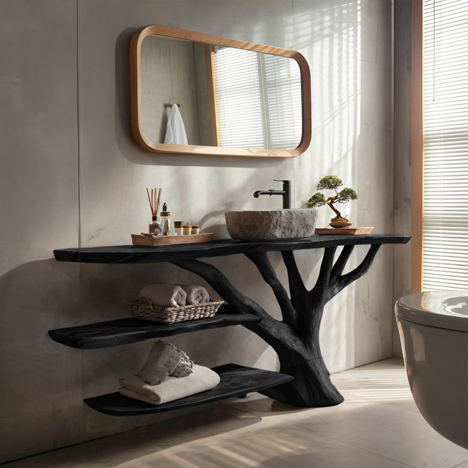 Revitalize your bathroom with our Handmade Wooden Bathroom Vanity, a perfect fusion of rustic charm and modern elegance. This vanity is thoughtfully designed to enhance both the style and functionality of your bathroom, making it a standout piece in any modern home.