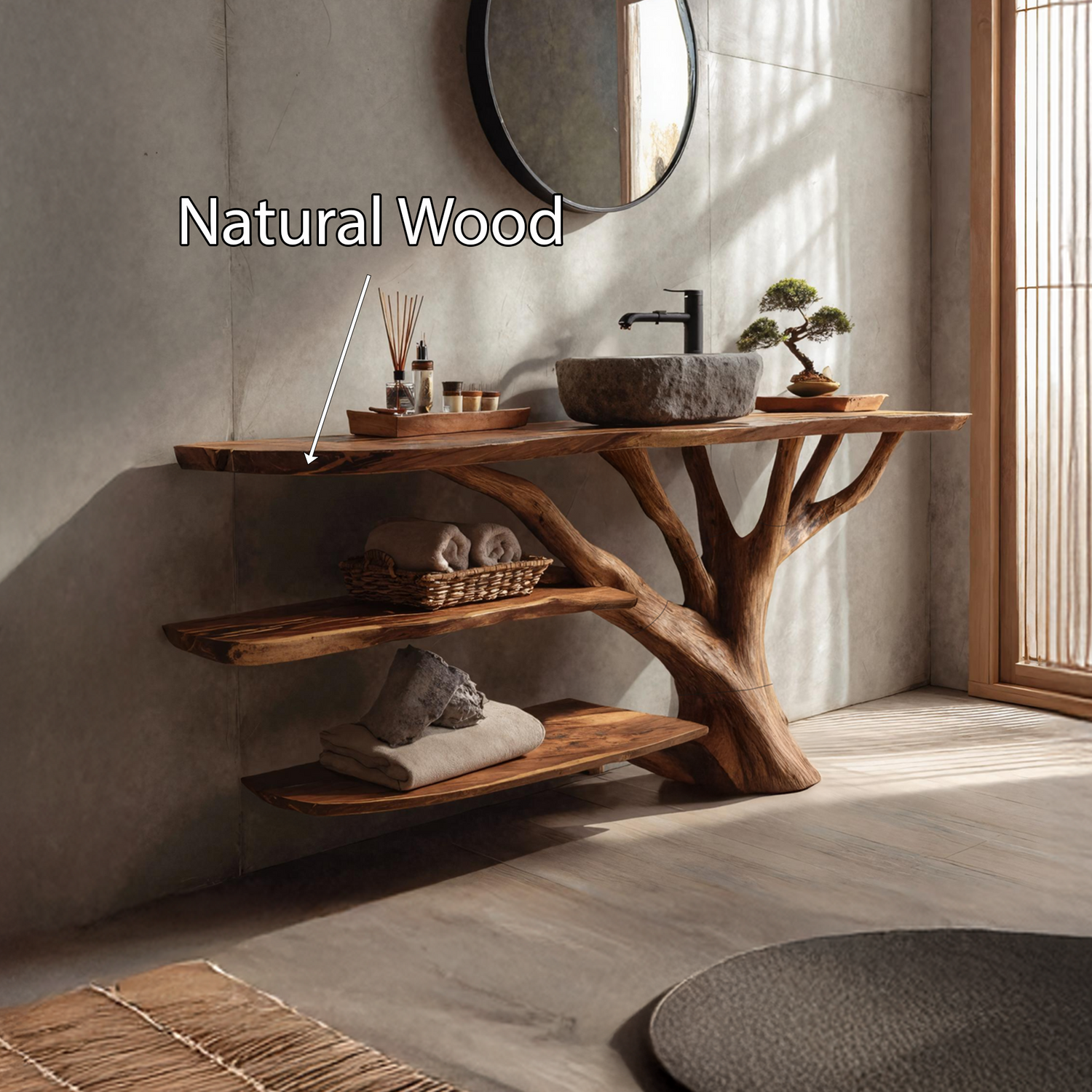 Farmhouse Wooden Live Edge Bathroom Vanity For Rustic Bathroom Design