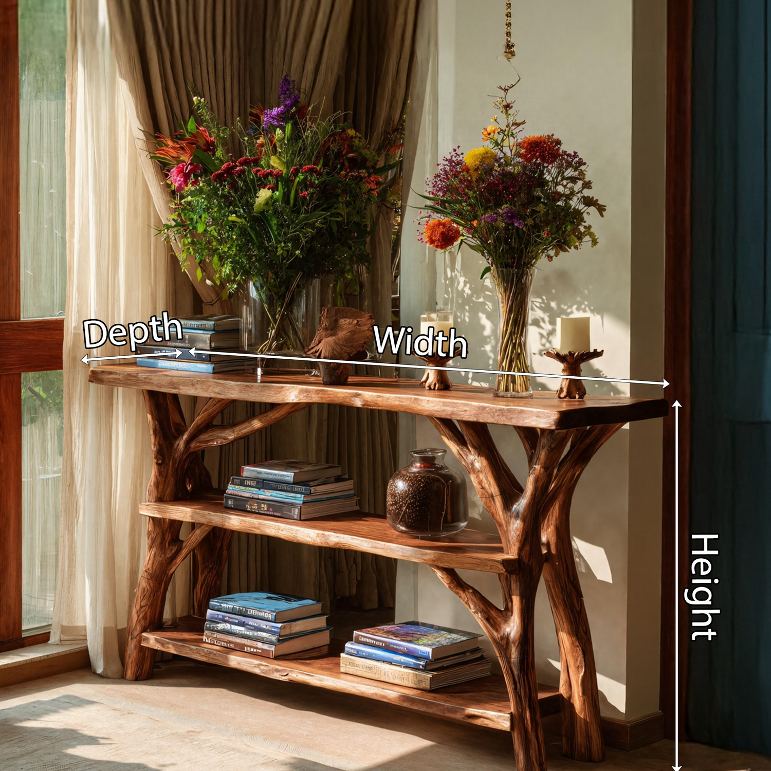 Made entirely from solid wood, every console table reflects the unique story of the material it’s built from. No two pieces are ever identical—each features distinct knots, color variations, and grain patterns that showcase the raw beauty of nature. This handcrafted quality ensures durability and authenticity, elevating it beyond a simple piece of furniture into a work of natural art.