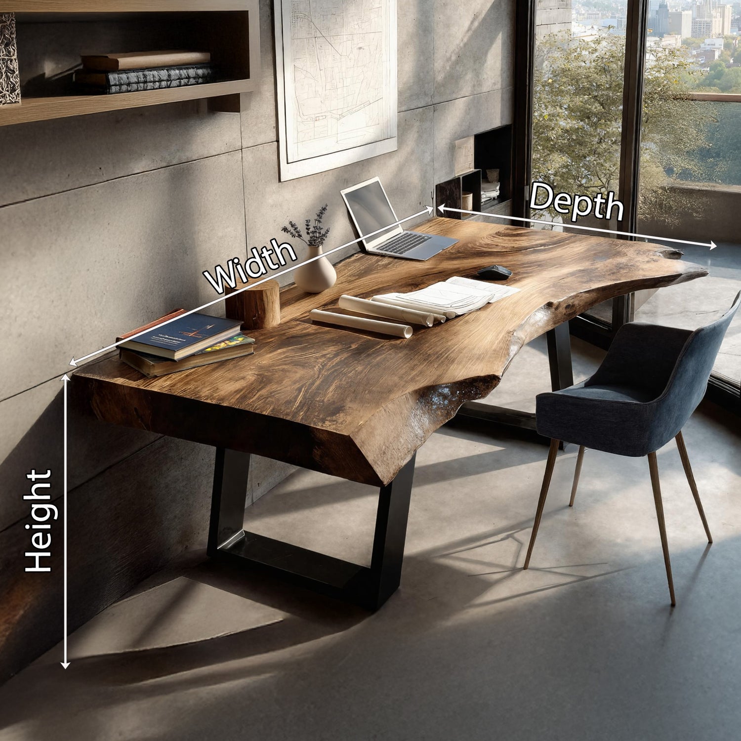 Farmhouse Wooden Live Edge Desk For Bedroom Decor