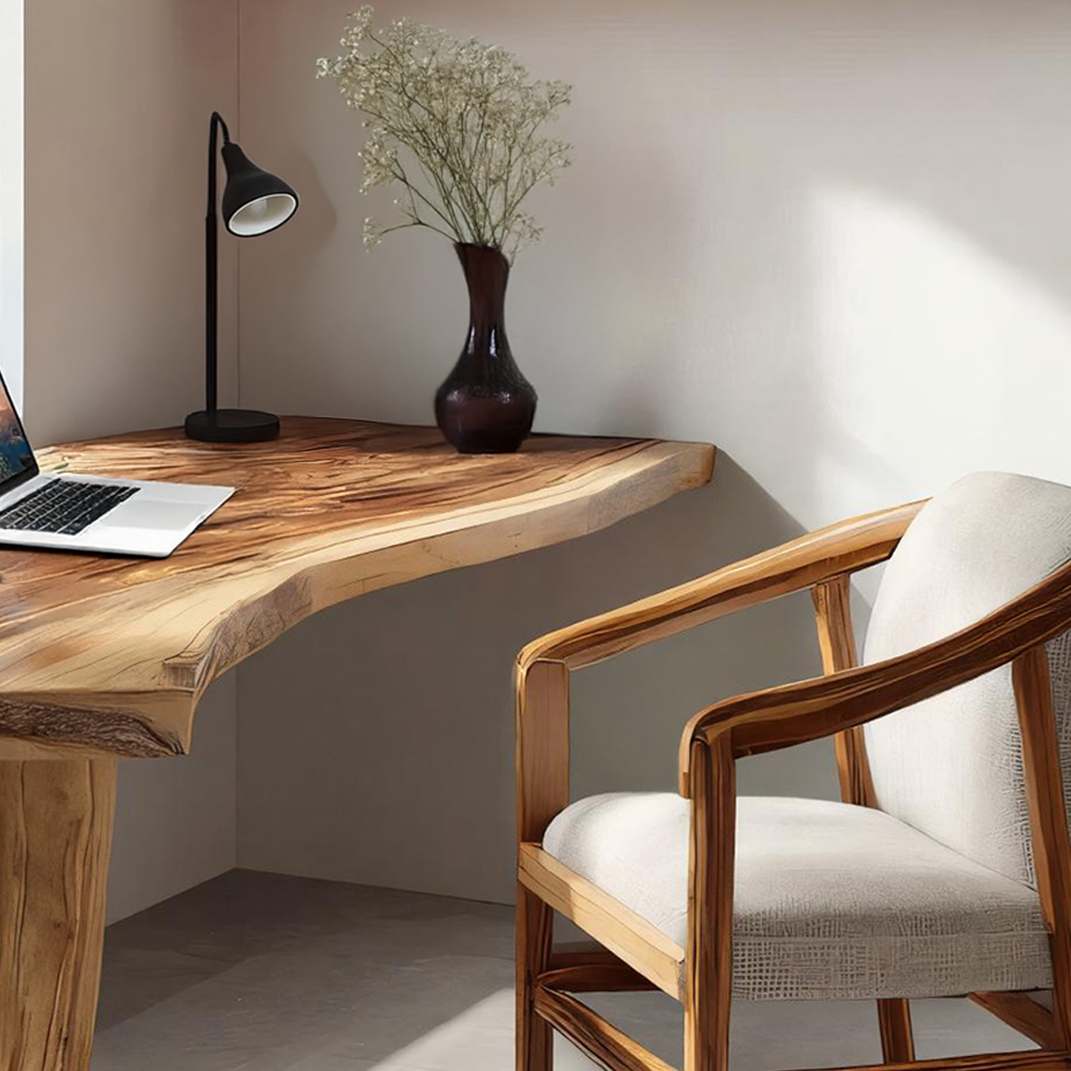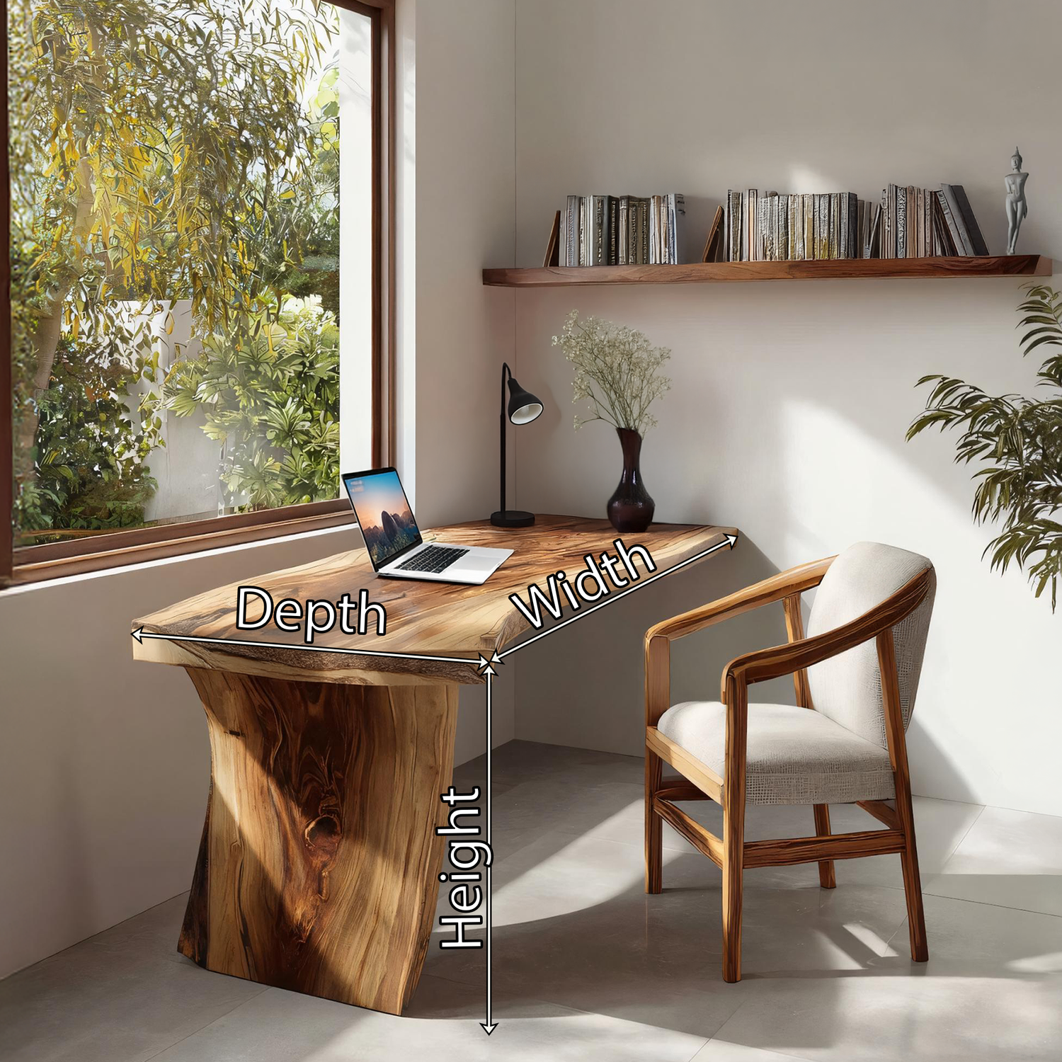 Farmhouse Wooden Live Edge Desk For Office And Study Room