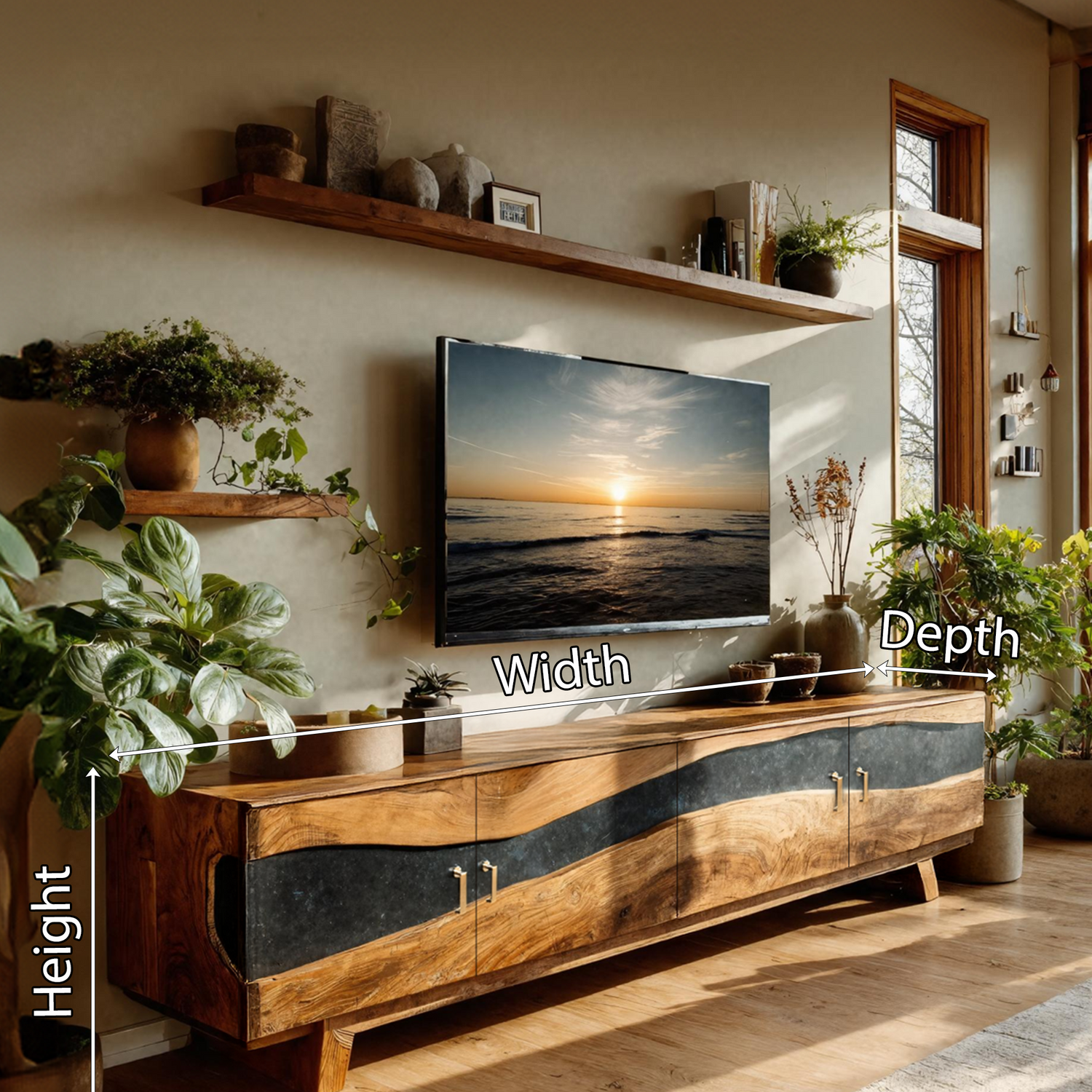 Transform your room with the Farmhouse Wooden Live Edge TV Stand For Bedroom Decor, a handcrafted piece that introduces warmth, natural texture, and everyday functionality to your interior. Featuring a balanced form and an open, airy structure, this stand blends farmhouse charm with practical storage for a beautifully organized space.