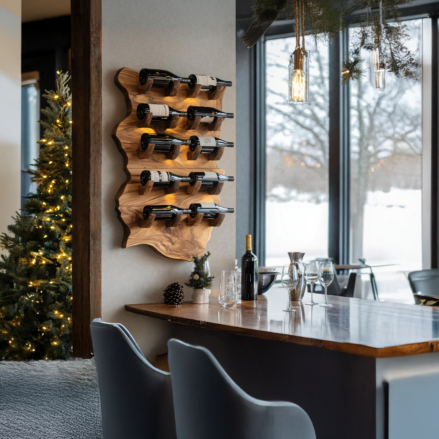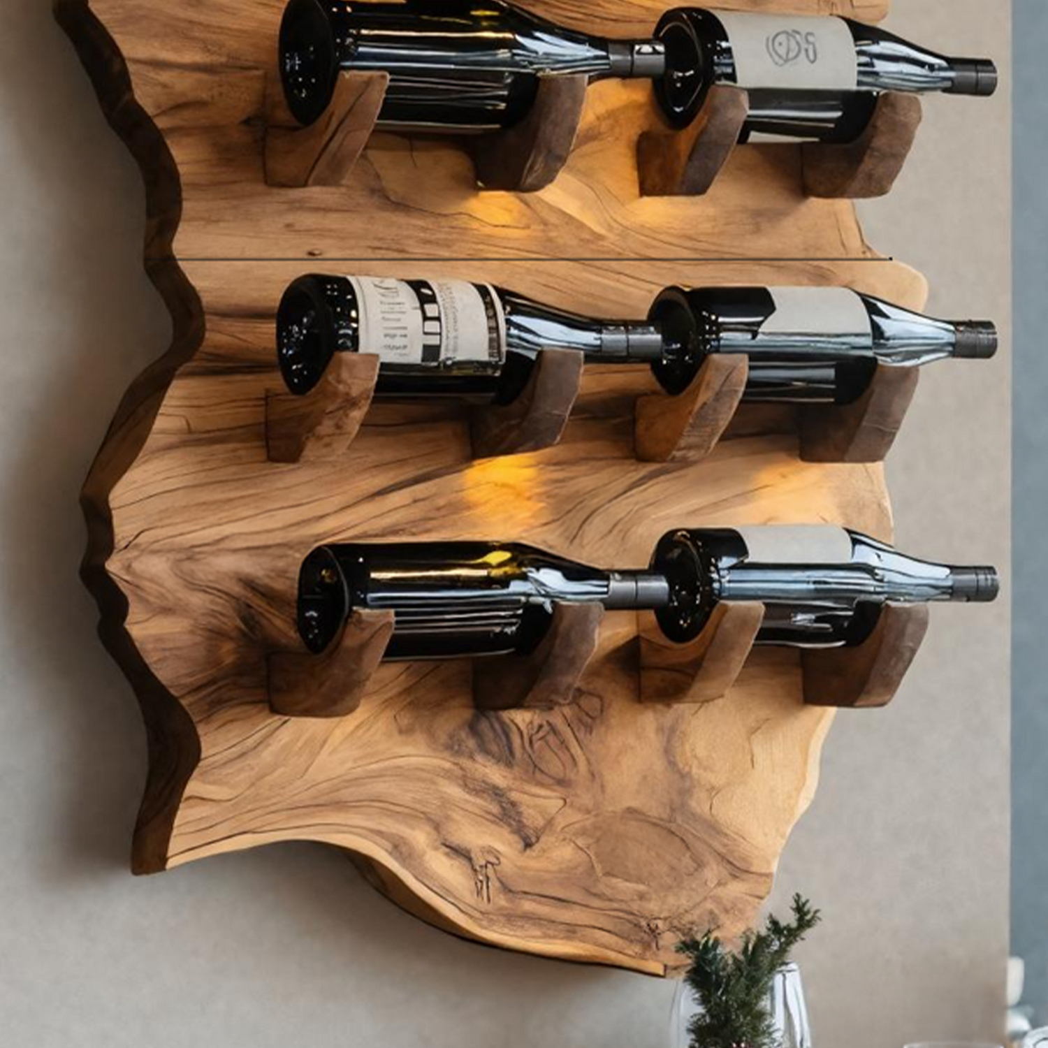 Farmhouse Wooden Live Edge Wine Holder For Furniture Decor