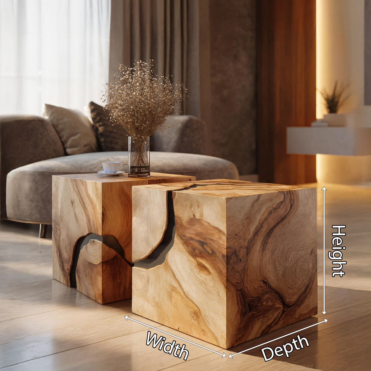 - Each table is entirely handcrafted, ensuring every piece is one-of-a-kind with its own distinctive tones, textures, and imperfections shaped by nature.