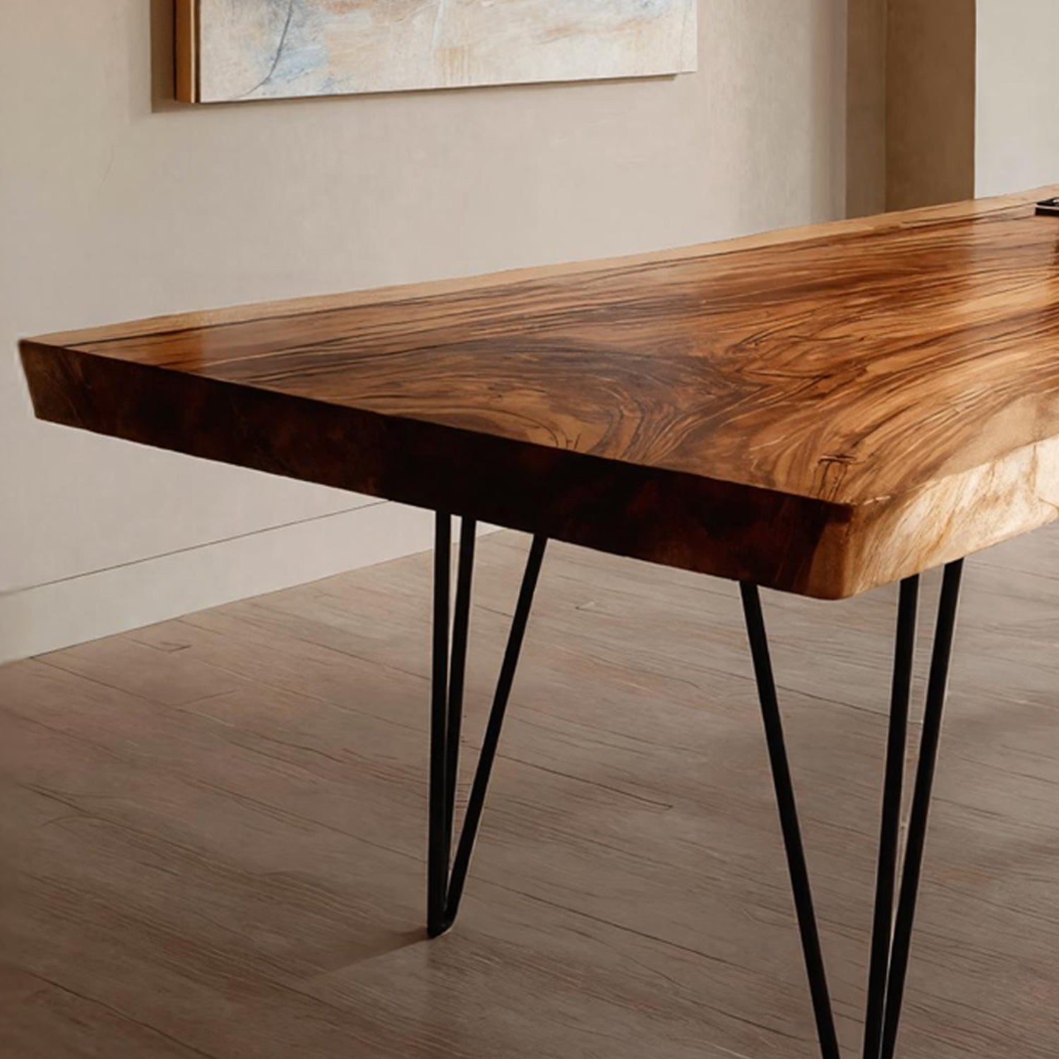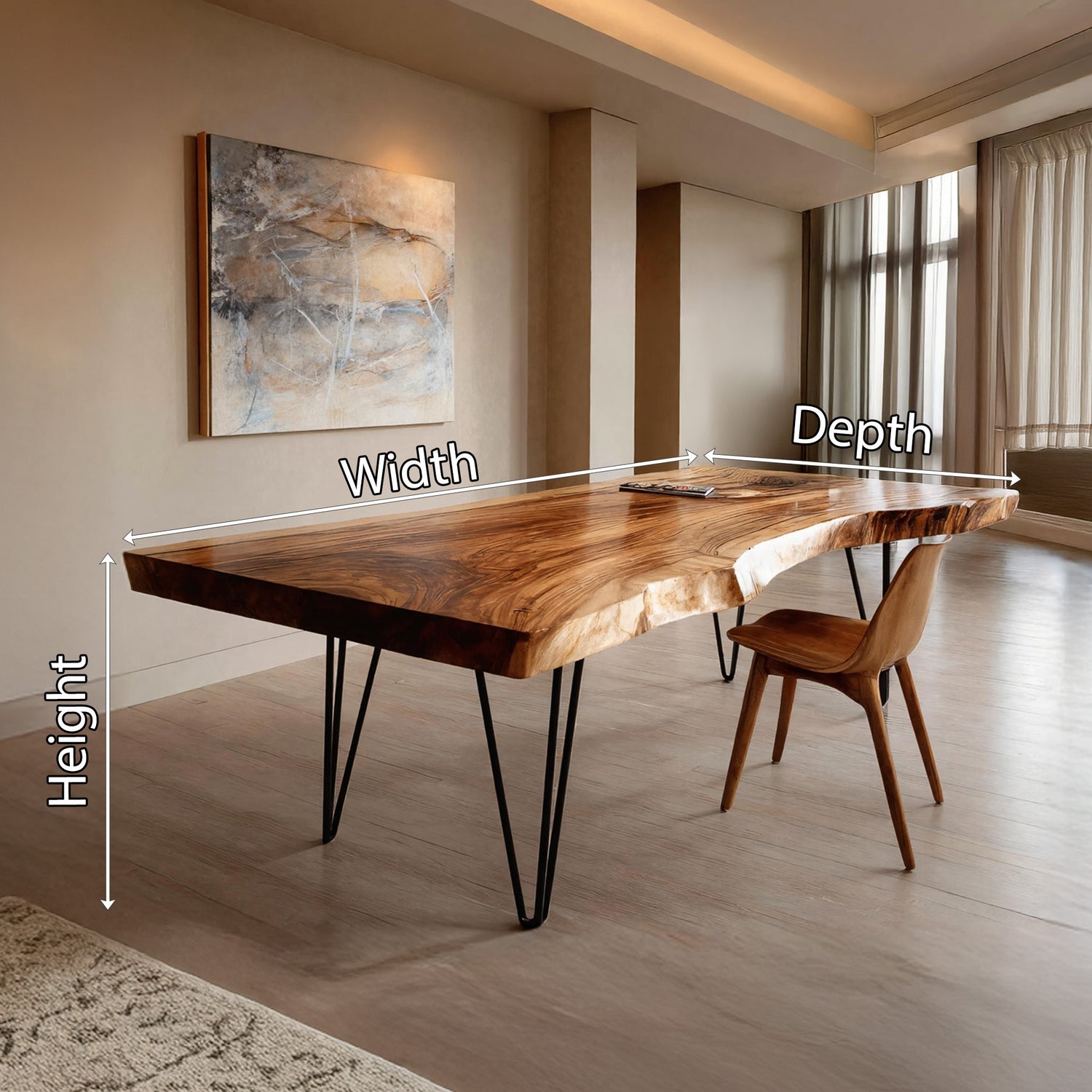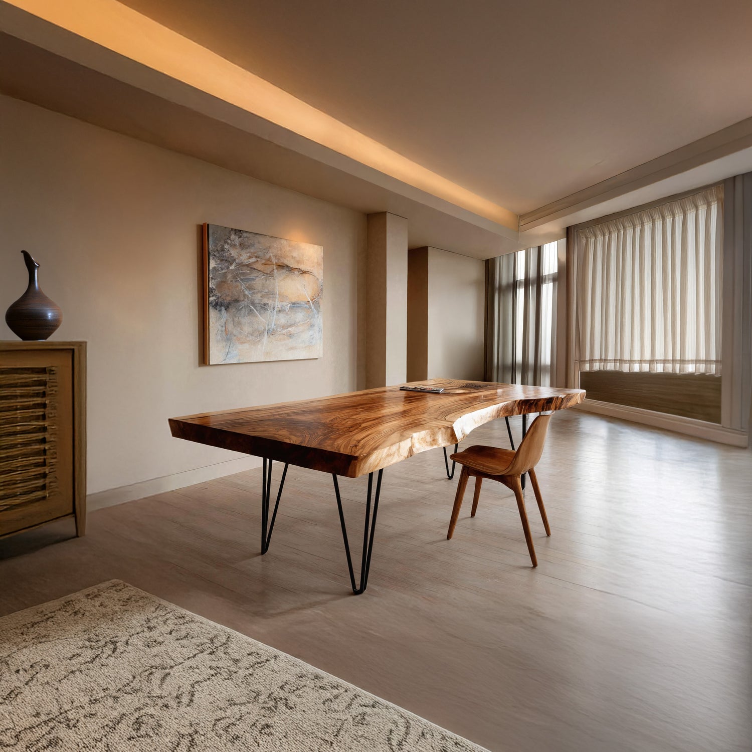 This desk is meticulously handcrafted from carefully selected solid monkey pod wood, showcasing flowing live edges, rich grain movement, and natural variations that make each piece one-of-a-kind. Designed with a timeless silhouette, it blends artisanal craftsmanship with enduring functionality, suitable for both contemporary and rustic-inspired spaces.