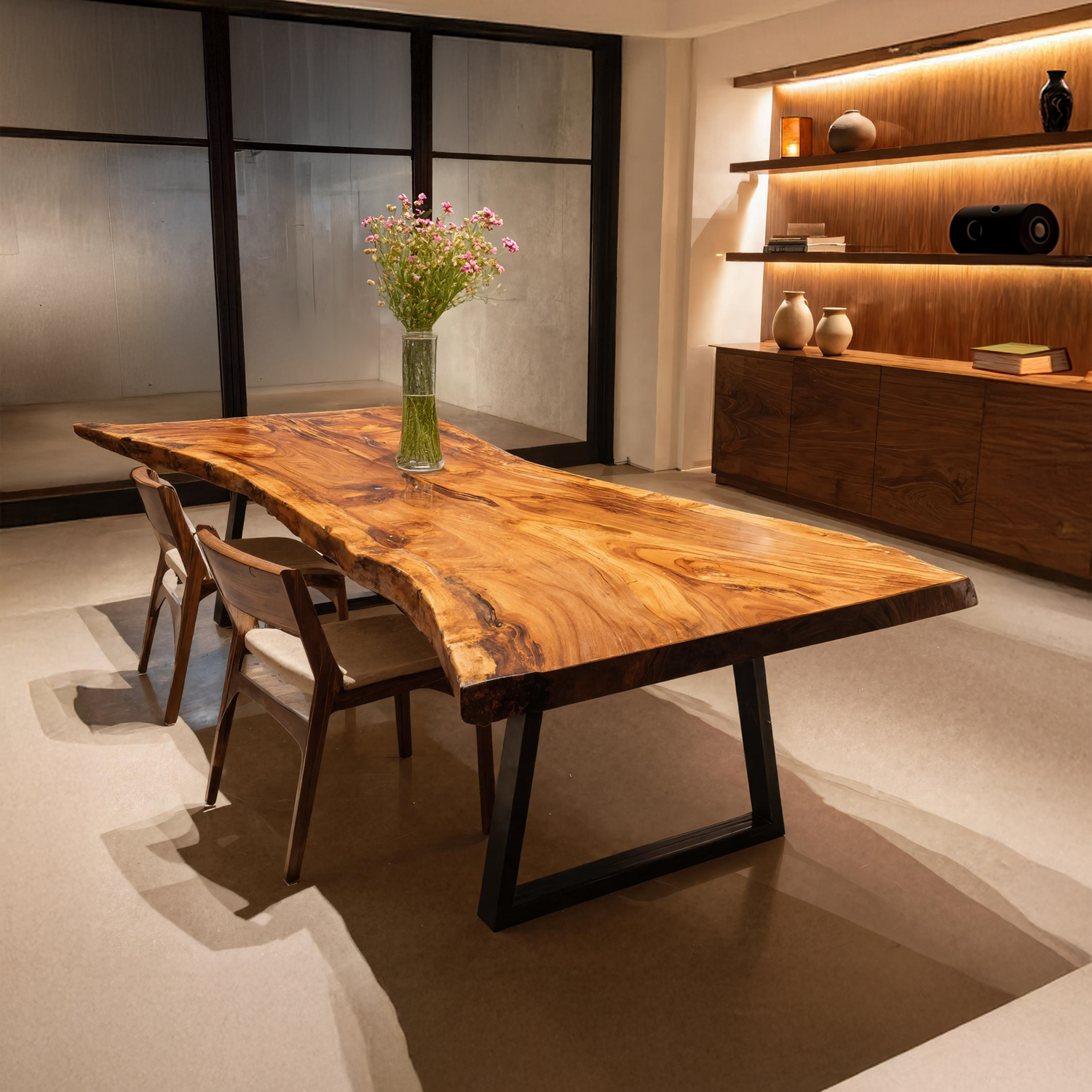 Enhance the comfort of your home with the Furniture Decor Farmhouse Live Edge Dining Table Warm, a piece that blends rustic farmhouse charm with the organic character of a live edge surface. Its inviting wood texture and grounded silhouette create a warm focal point for family meals and everyday dining gatherings.
