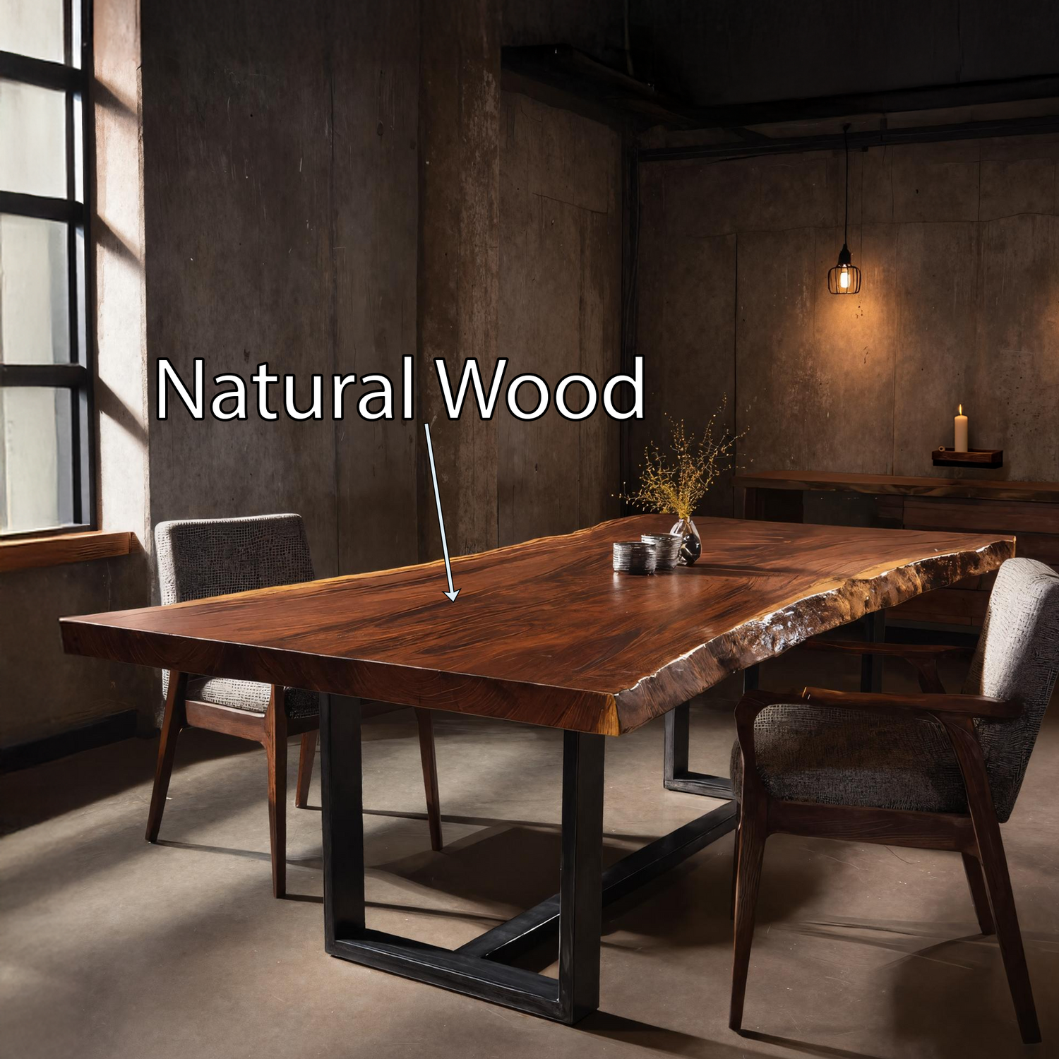 Crafted from kiln-dried hardwood, each tabletop showcases unique grain patterns, tonal variations, and natural markings. The table offers both durability and tactile warmth. Matching solid wood legs further reinforce structural integrity and visual harmony.