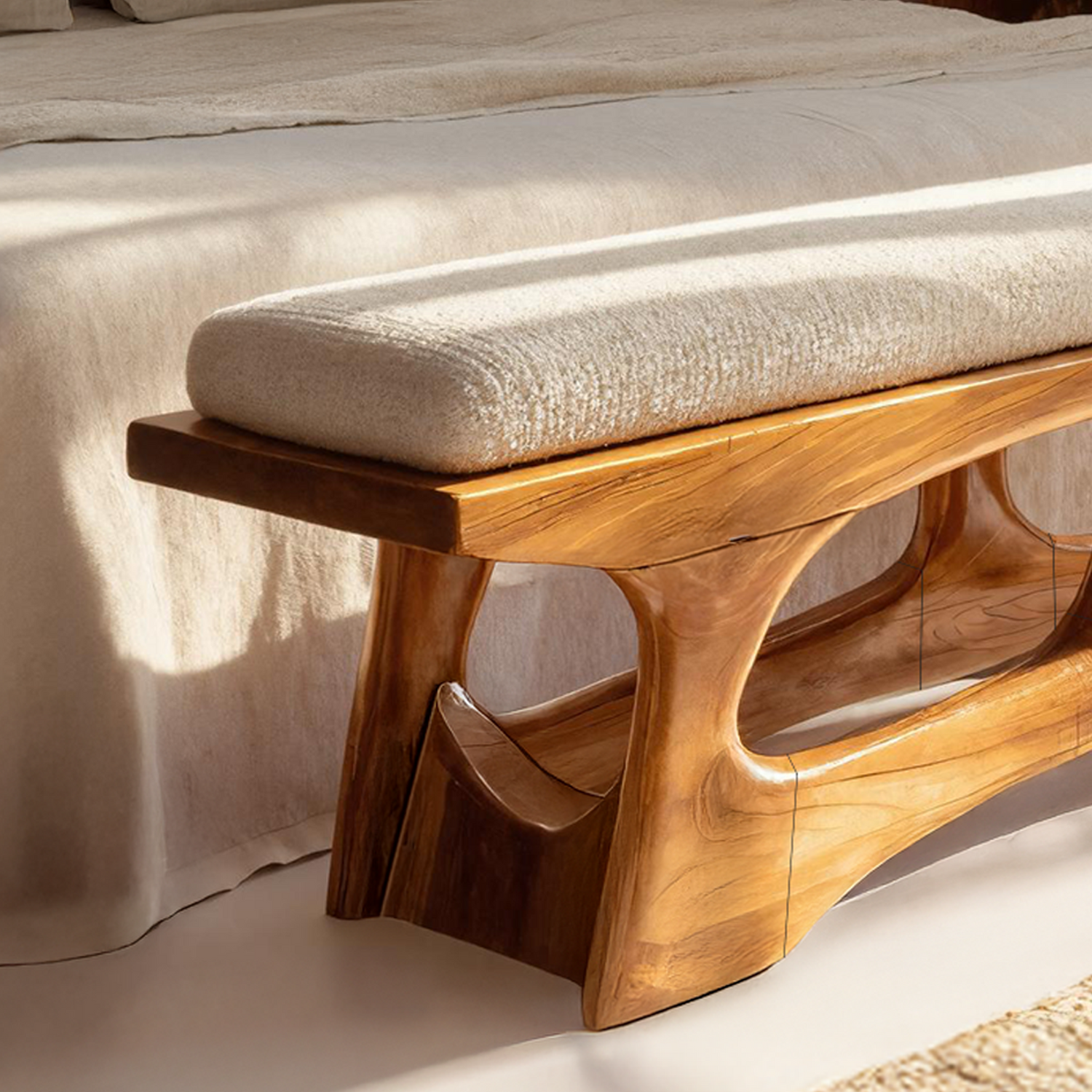 Handcrafted Curved Wood Bench For Furniture Styling brings a soft, organic presence to interior or outdoor spaces. Shaped with gentle curves and crafted from natural wood, this bench offers functional seating while acting as a refined decorative element. Its balanced form makes it easy to pair with a variety of furniture settings and everyday layouts.