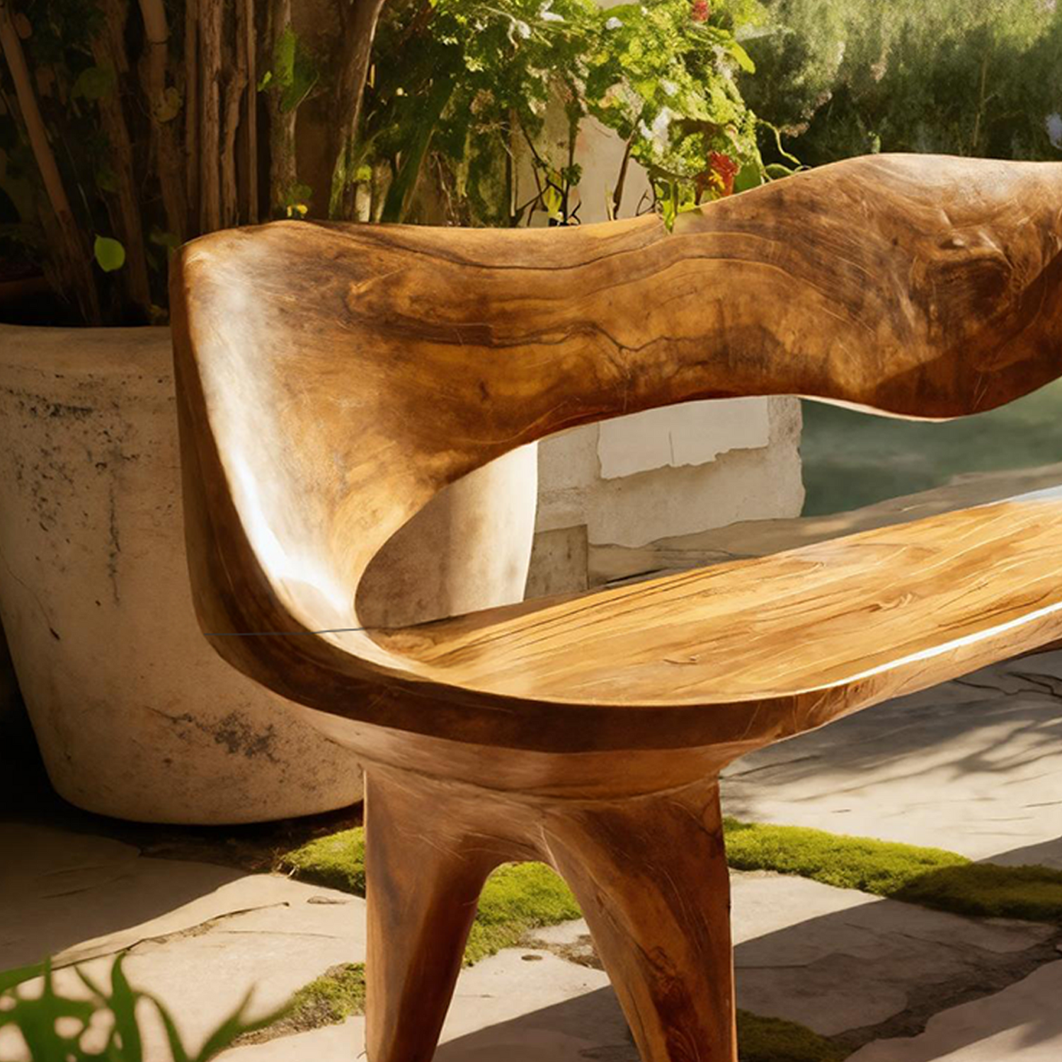 Handcrafted Curved Wood Bench For Outdoor Furniture Styling