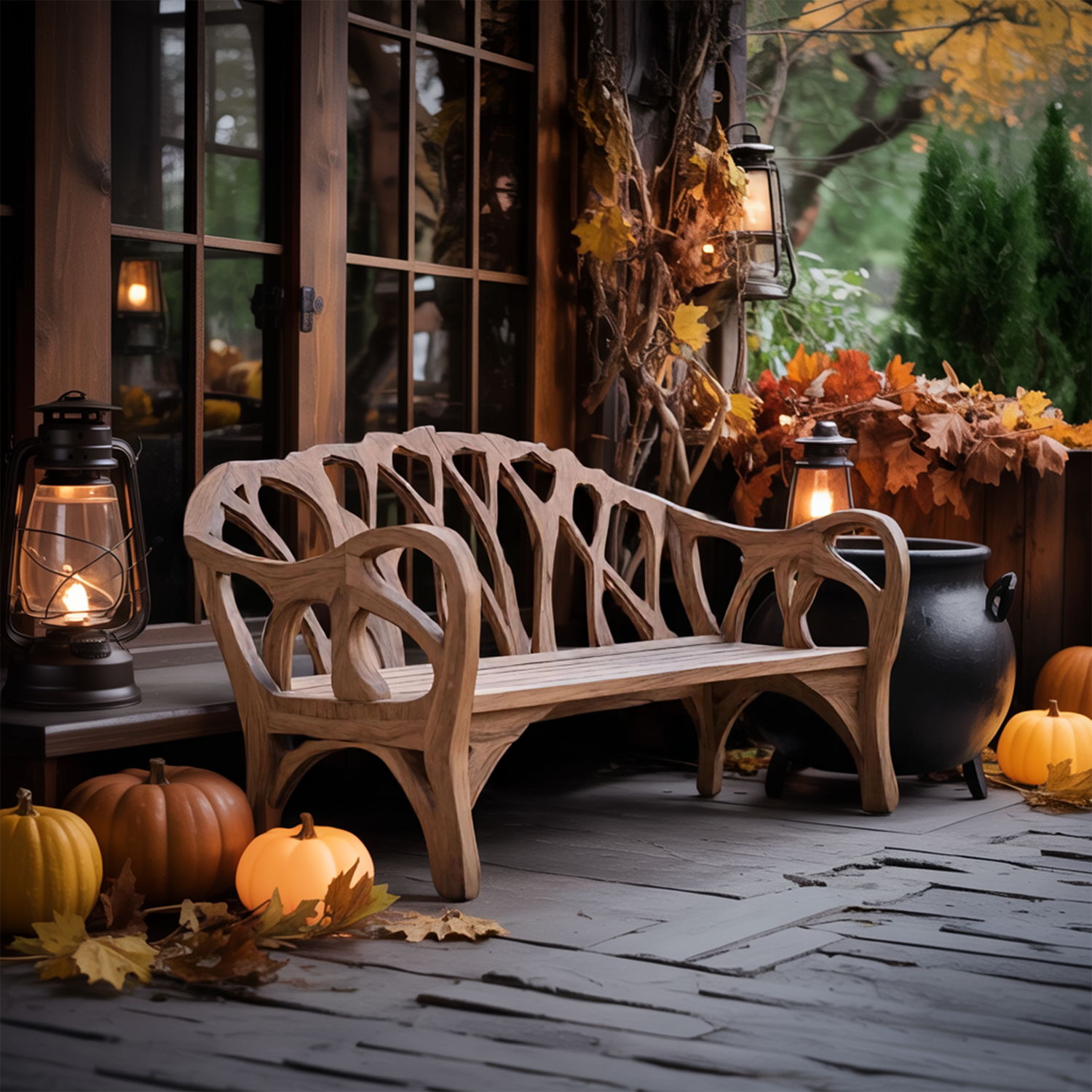 Celebrate the Halloween spirit with a bench that highlights the natural character of wood. Each piece features distinctive knots, live edges, and organic patterns, making your bench truly one of a kind. Its seasonal charm and artisanal details turn your porch or entryway into a warm, inviting space for fall celebrations.