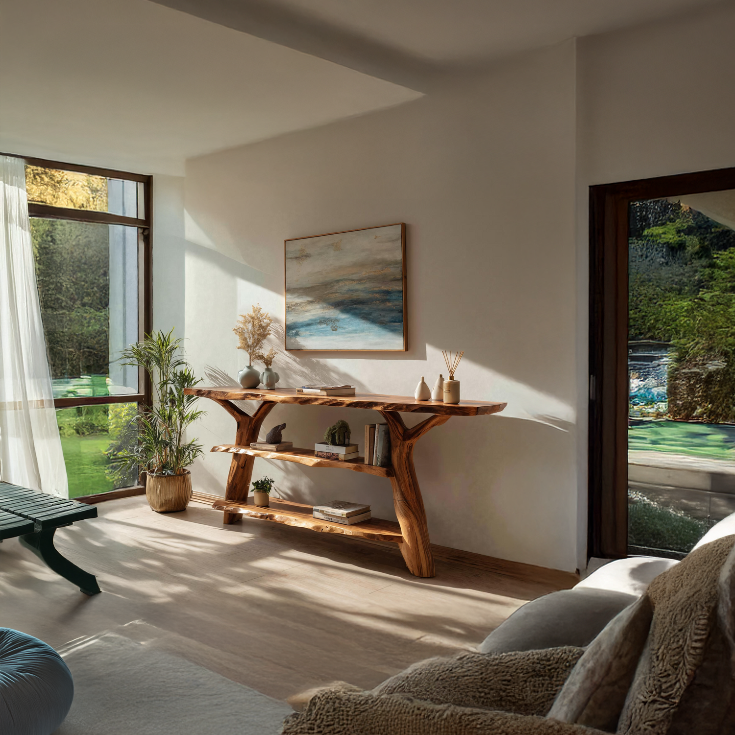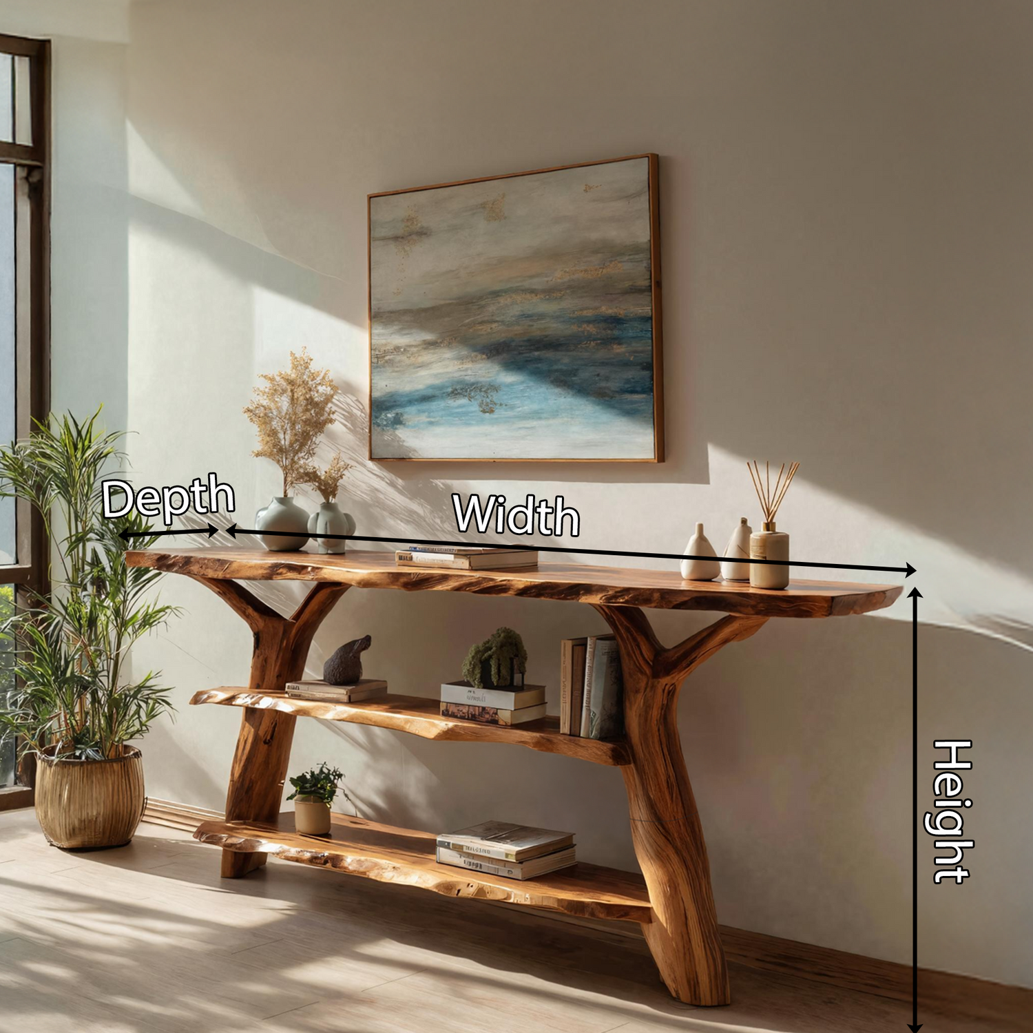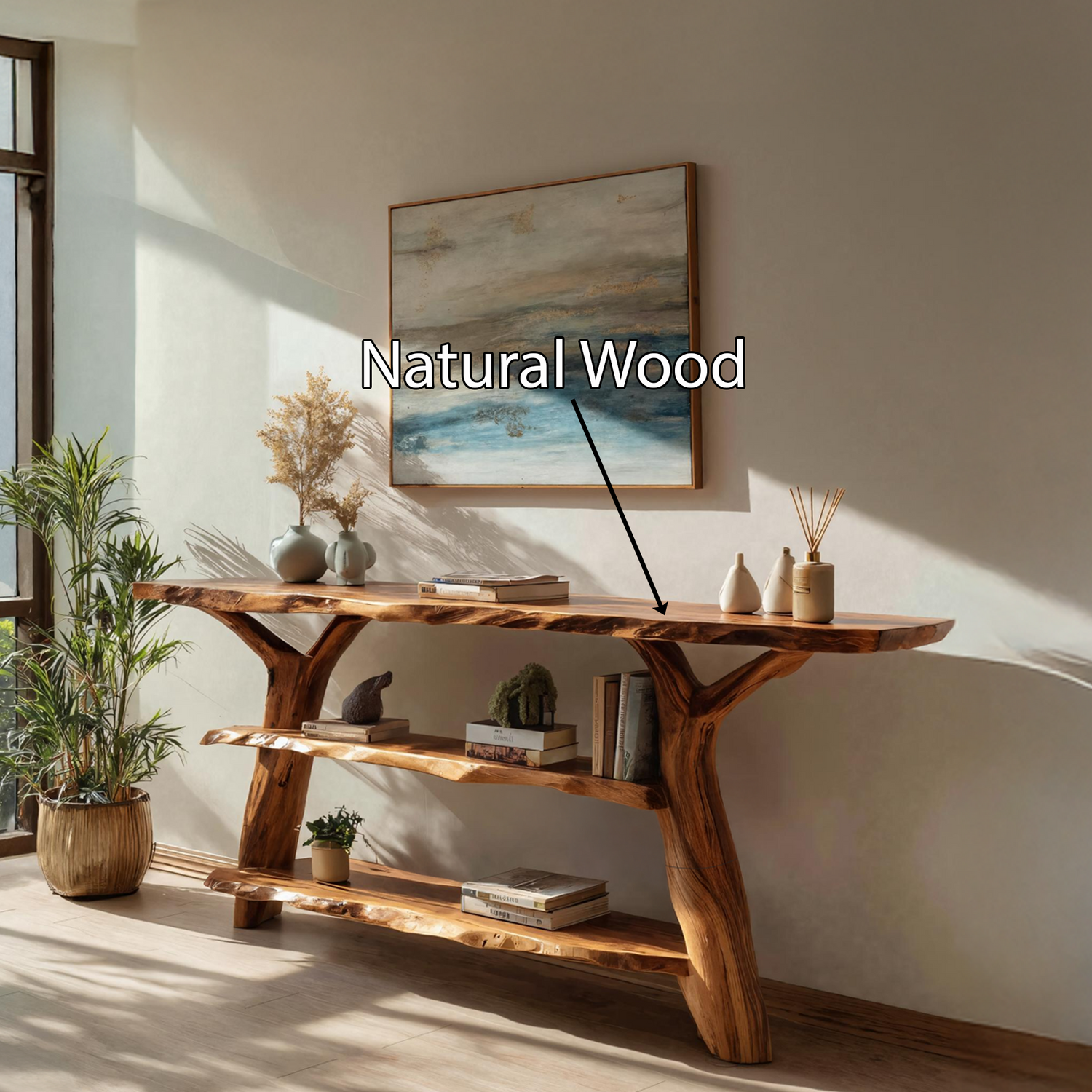 Made entirely from solid wood, every console table reflects the unique story of the material it’s built from. No two pieces are ever identical—each features distinct knots, color variations, and grain patterns that showcase the raw beauty of nature. This handcrafted quality ensures durability and authenticity, elevating it beyond a simple piece of furniture into a work of natural art.