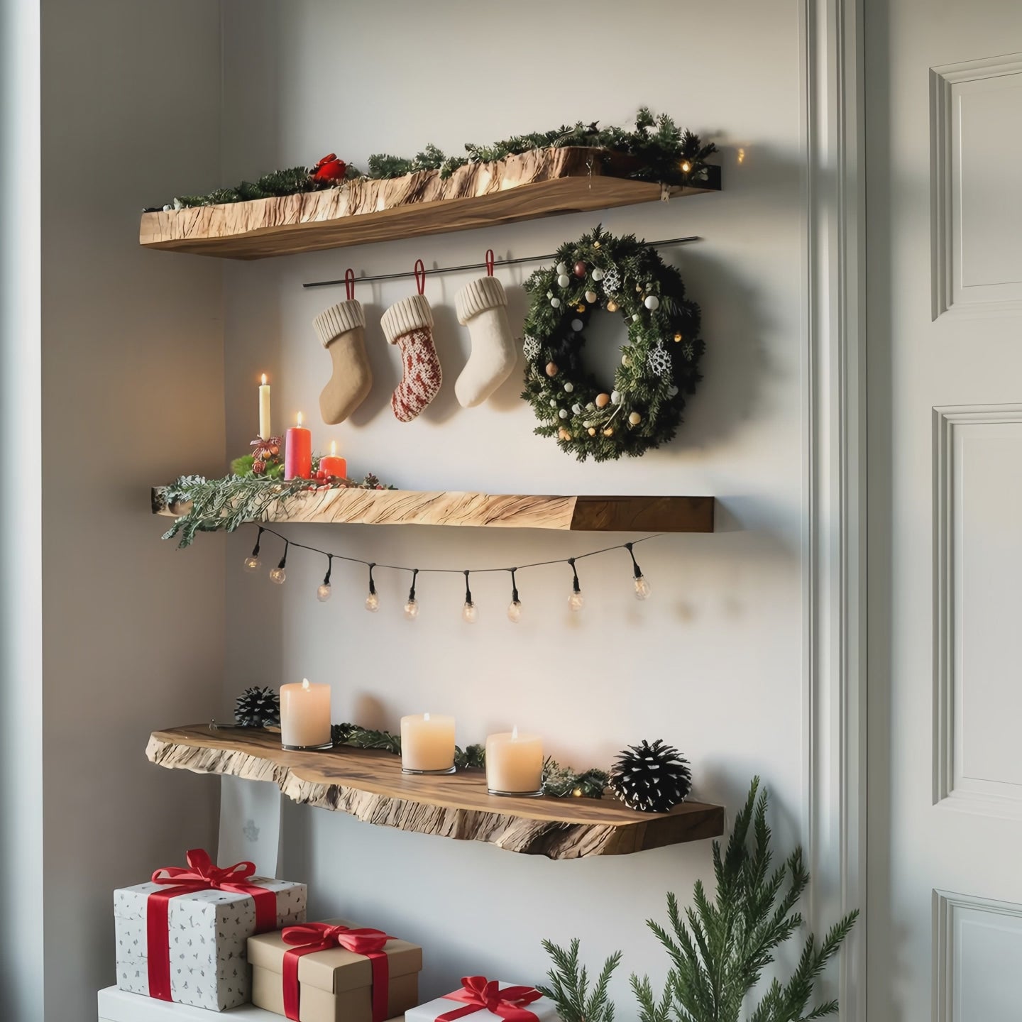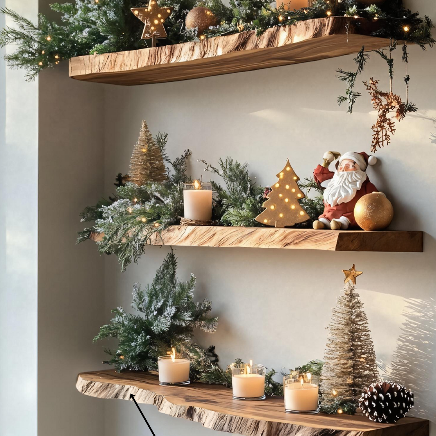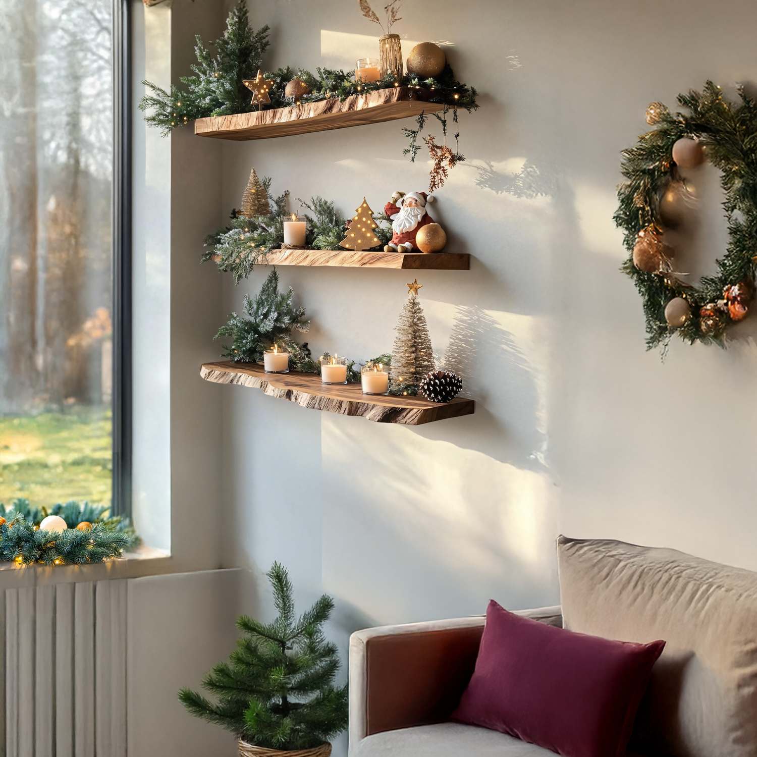 Handcrafted Live Edge Floating Shelf For Festive Xmas Entryway Design