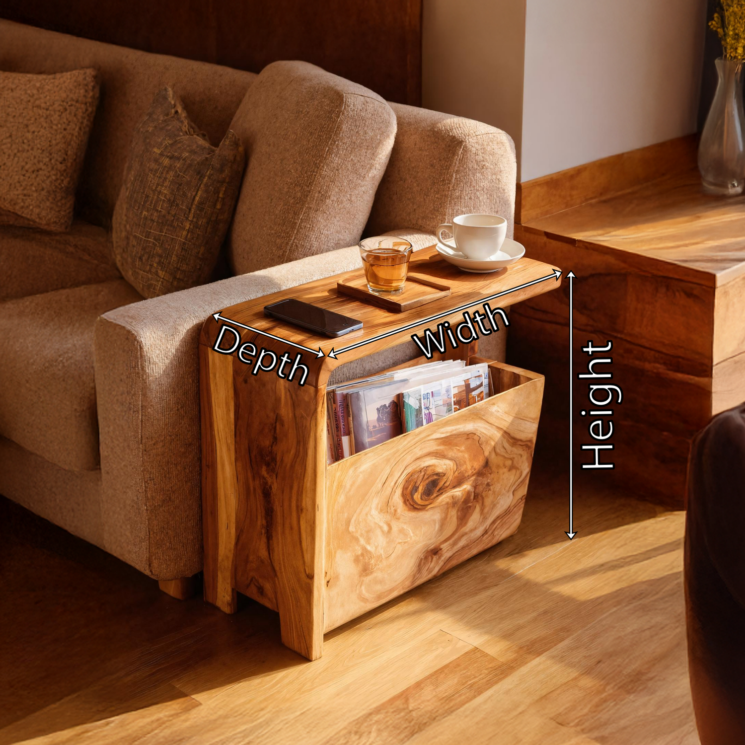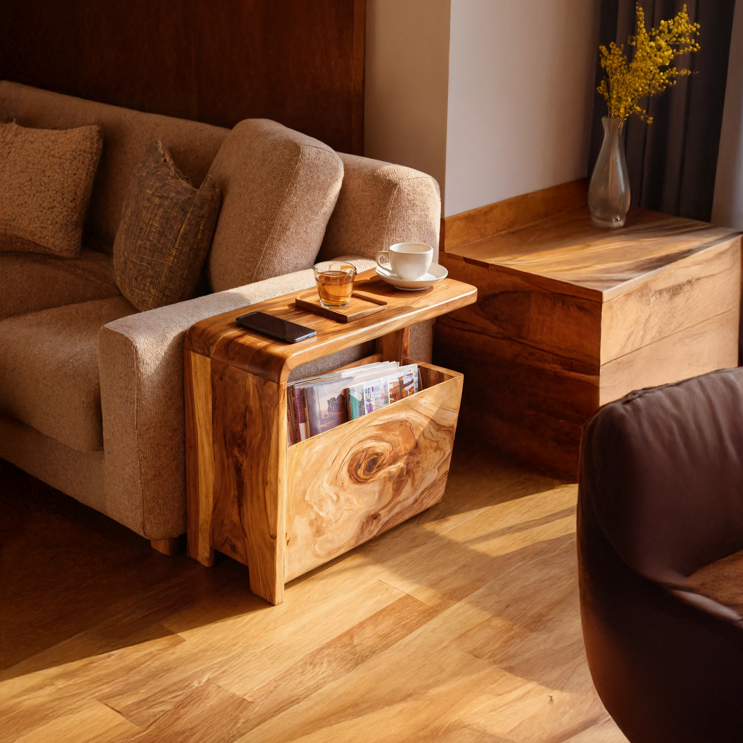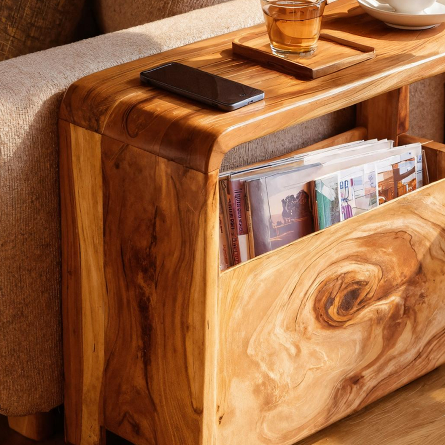 Add a touch of natural sophistication to your home with the Handcrafted Live Edge Side Table For Elegant Furniture. Made from solid wood and finished with a striking live edge, this table blends organic beauty with refined craftsmanship. Its compact, versatile design fits perfectly beside a sofa or accent chair, offering a stylish surface for décor or daily essentials while elevating your space with an elegant, nature-inspired accent.