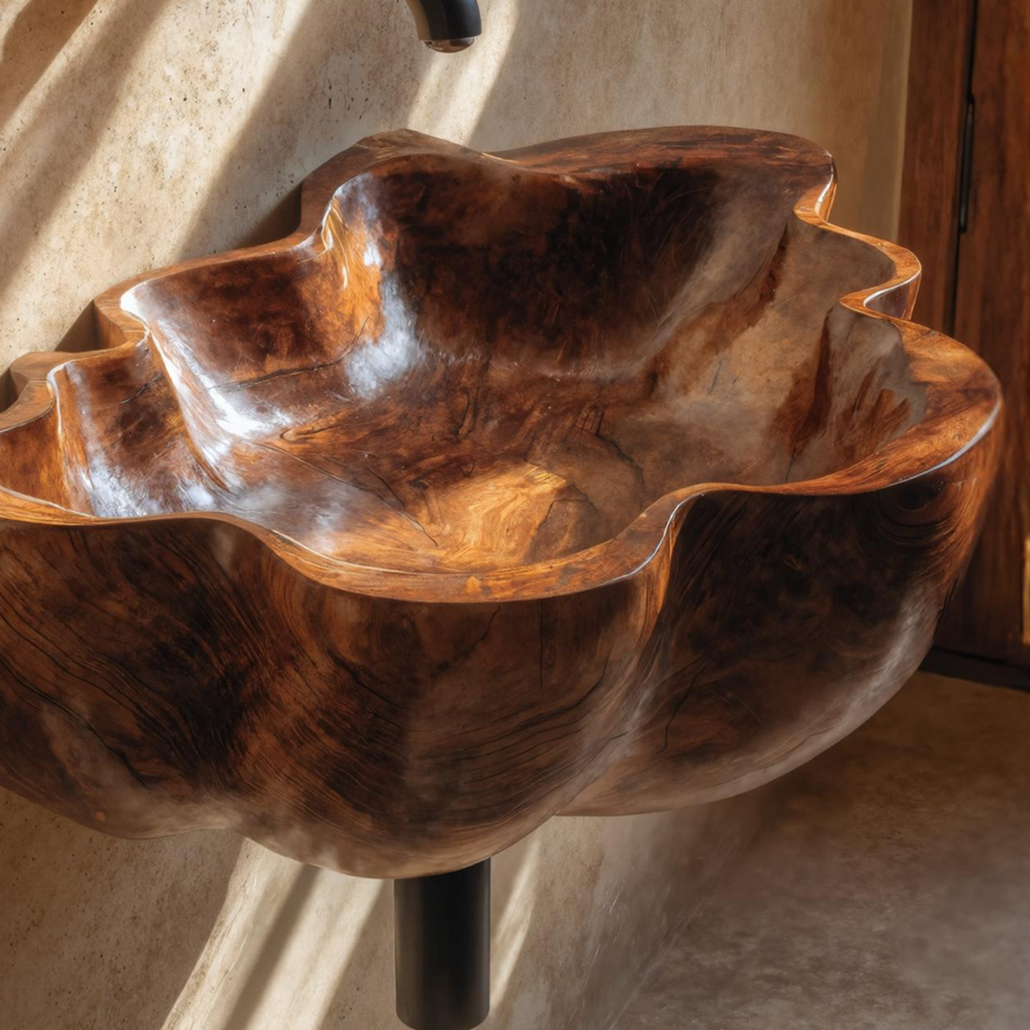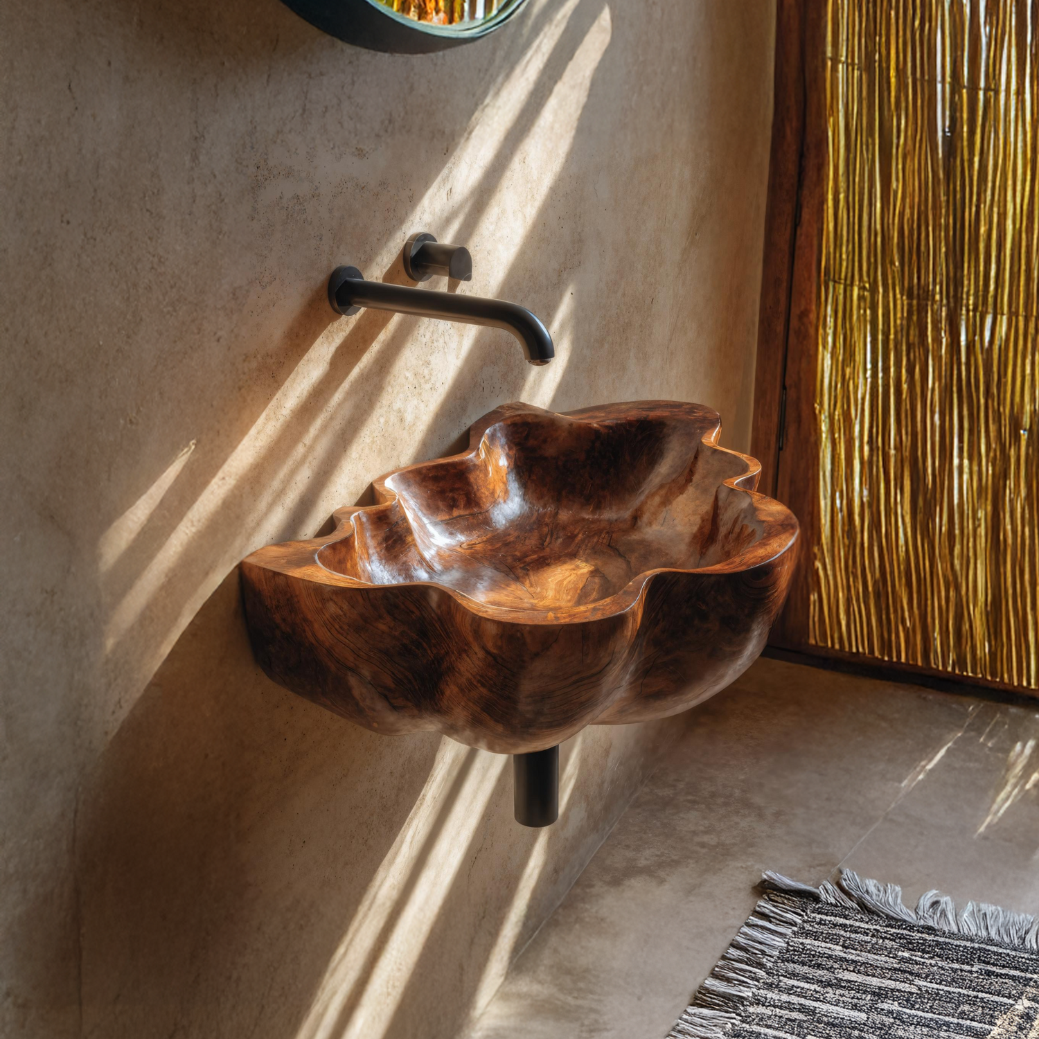 - Organic silhouette: Hand-carved and inspired by the free flow of water, ensuring no two sinks are alike.