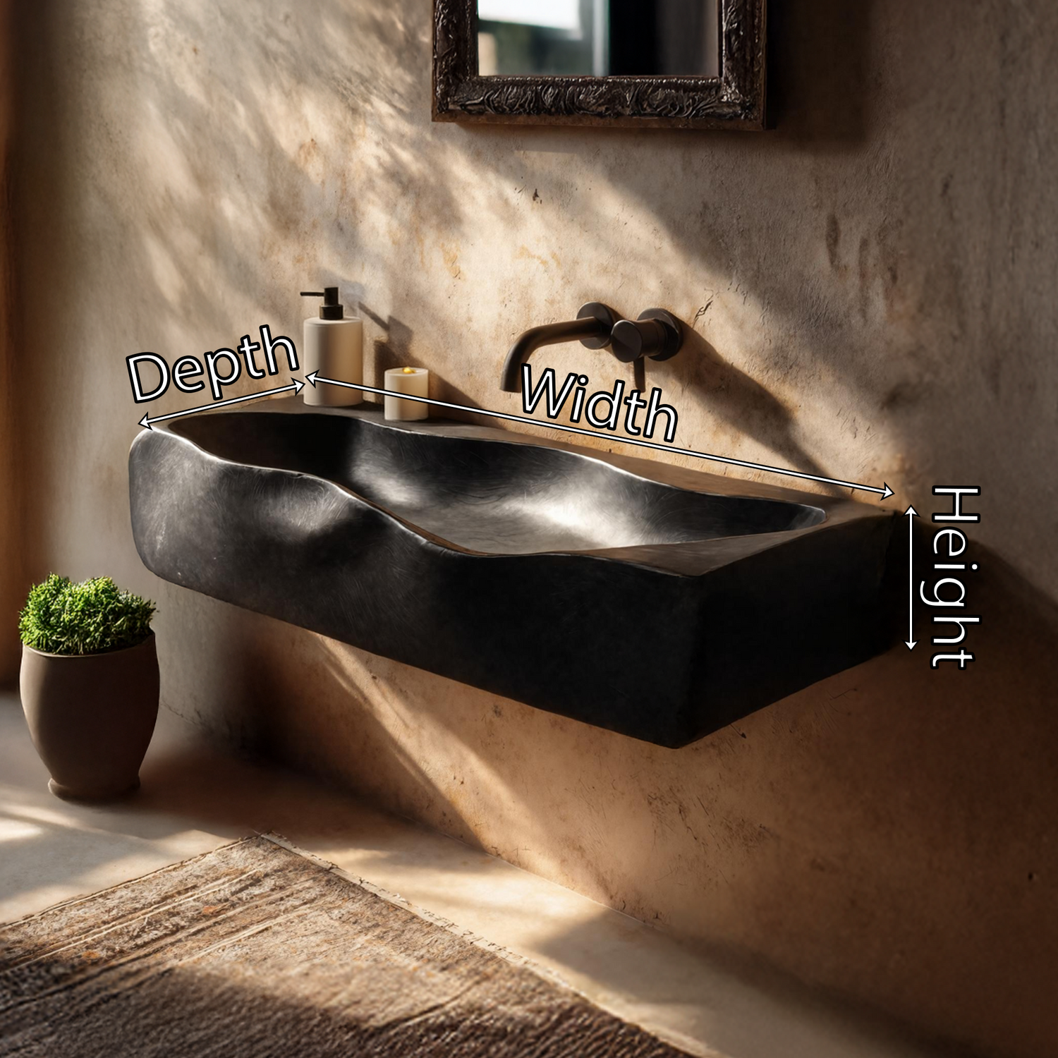 - Organic silhouette: Hand-carved and inspired by the free flow of water, ensuring no two sinks are alike.