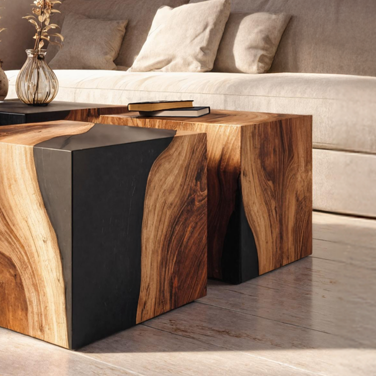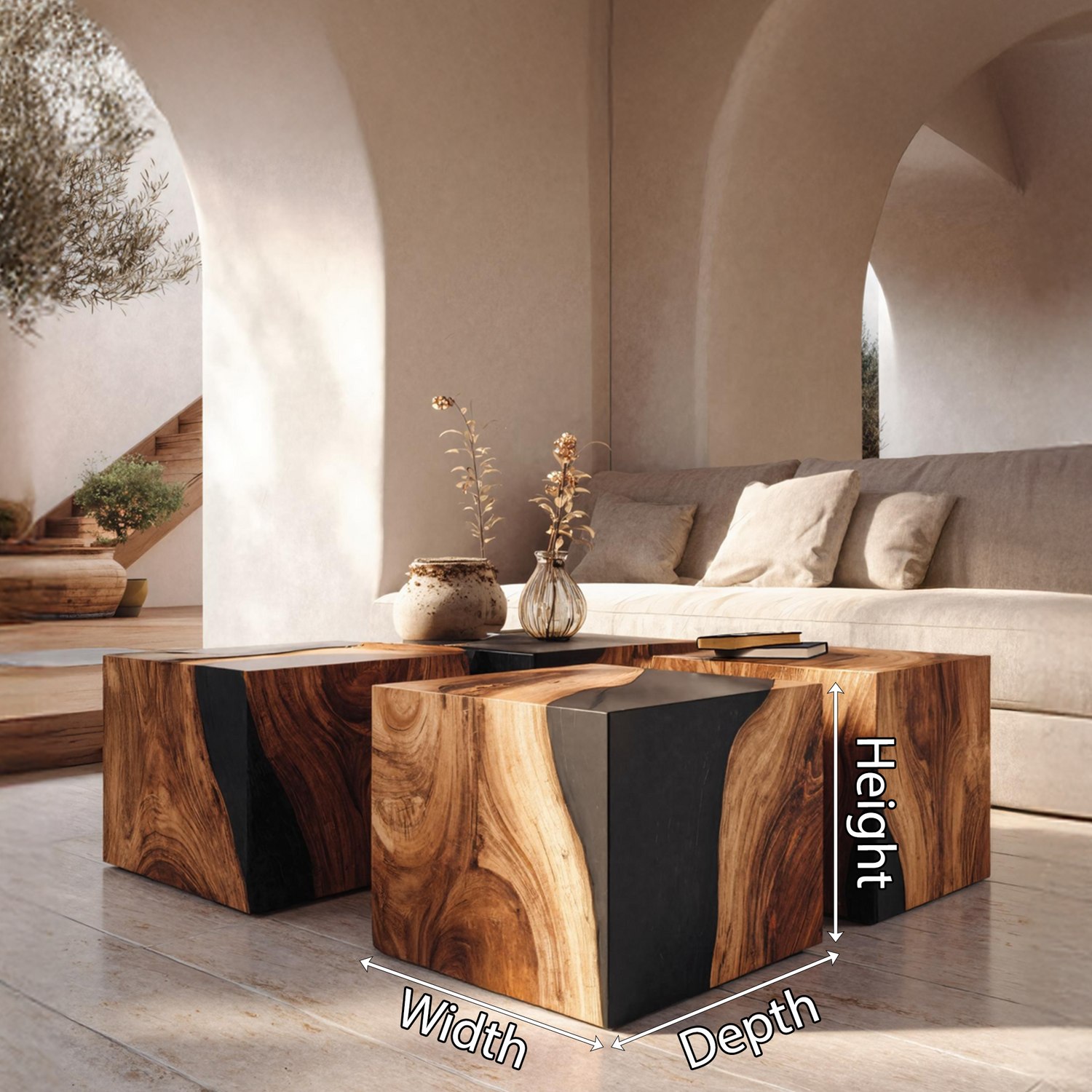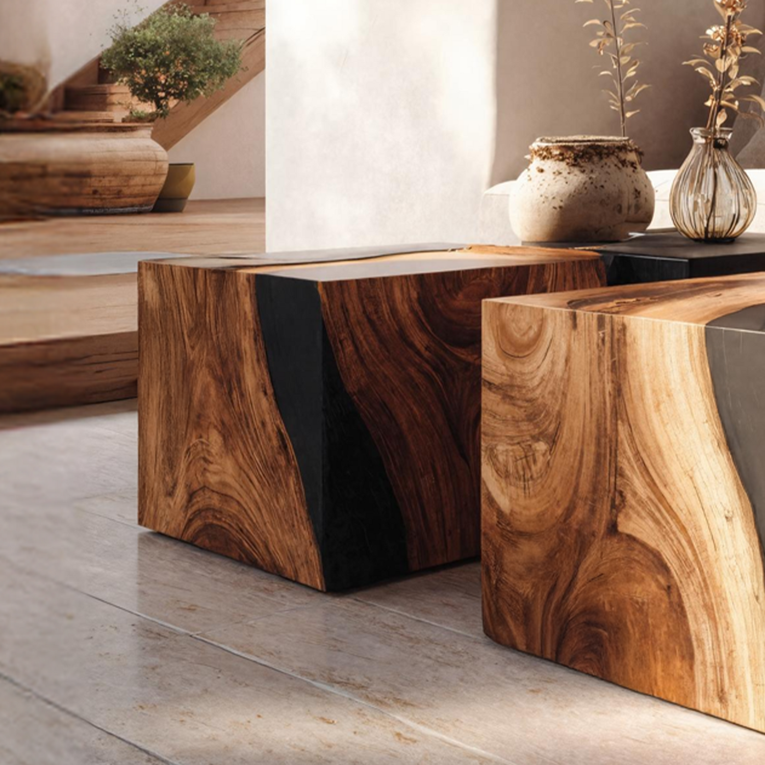 - Each table is entirely handcrafted, ensuring every piece is one-of-a-kind with its own distinctive tones, textures, and imperfections shaped by nature.