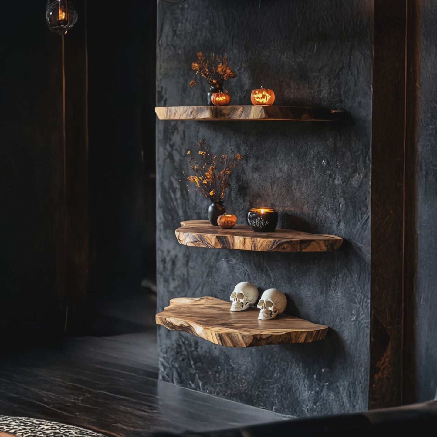 Create a festive yet functional touch with the Handcrafted Solid Floating Shelf For Bedroom Unique Halloween Accent. Made from durable solid wood and detailed with artisanal craftsmanship, this shelf combines timeless style with everyday practicality. Perfect for displaying Halloween décor, candles, or personal treasures, it enhances your bedroom with warmth and character. Its floating design maximizes space while offering a unique focal point that remains stylish well beyond the holiday season.