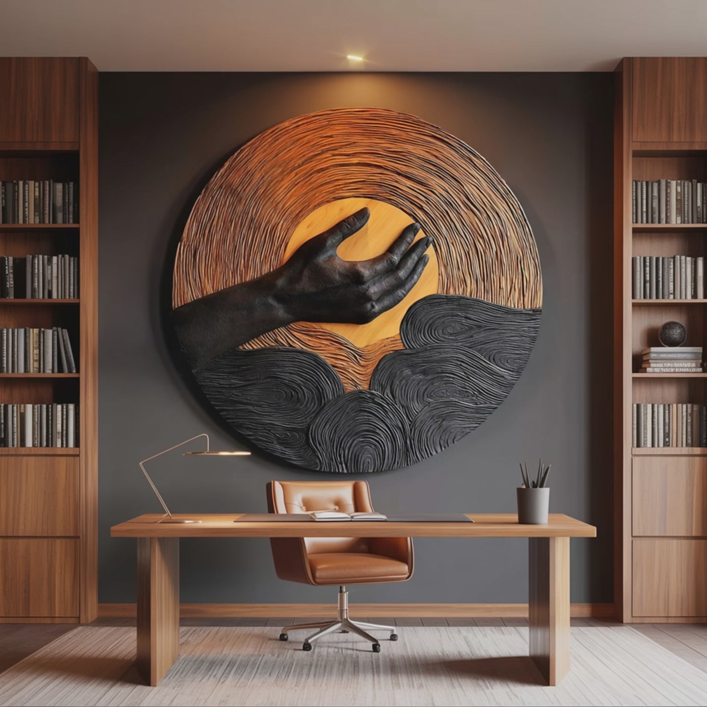 Handcrafted Solid Wood 3D Sculpture For Living Room Wall Art