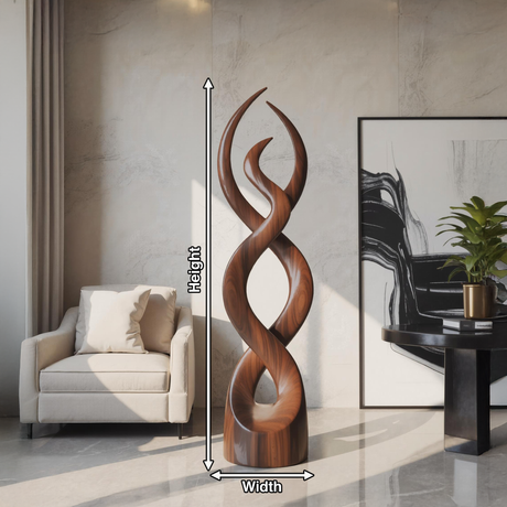 Inspired by the flowing movement of flames and the organic forms found in nature, this abstract wooden sculpture is more than just décor - it’s a visual statement. Its fluid, twisting curves evoke motion and harmony, creating a sense of energy that subtly transforms any space. Whether used as a focal point or an accent piece, it brings life and depth to minimalist, modern, and contemporary interiors.