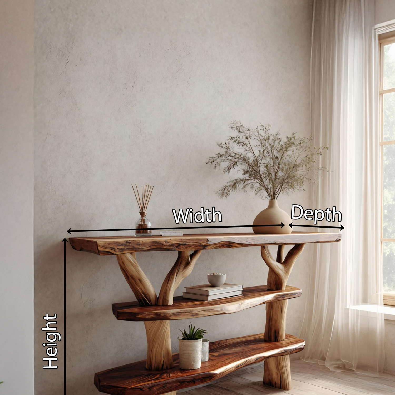 Made entirely from solid wood, every console table reflects the unique story of the material it’s built from. No two pieces are ever identical—each features distinct knots, color variations, and grain patterns that showcase the raw beauty of nature. This handcrafted quality ensures durability and authenticity, elevating it beyond a simple piece of furniture into a work of natural art.