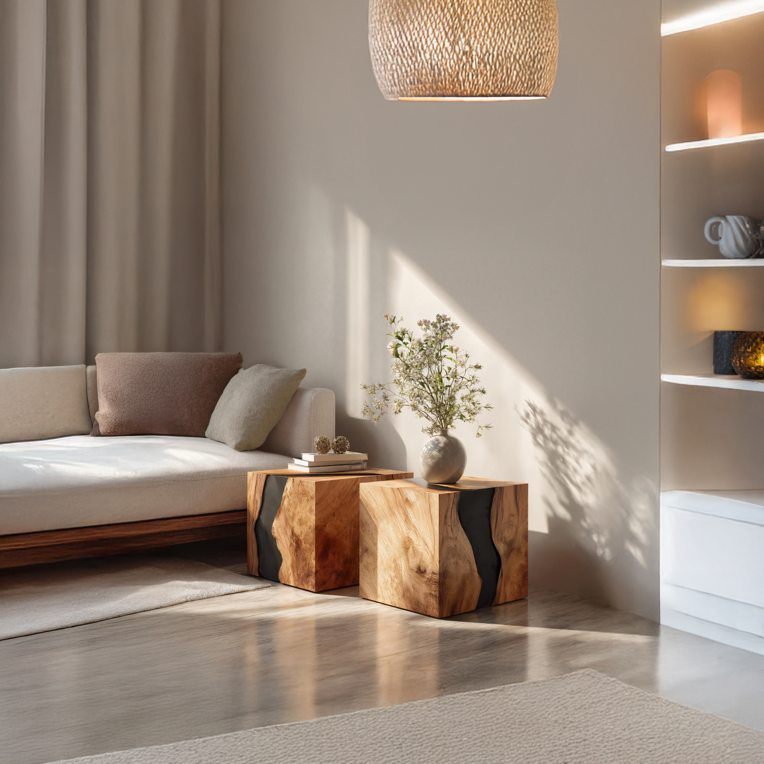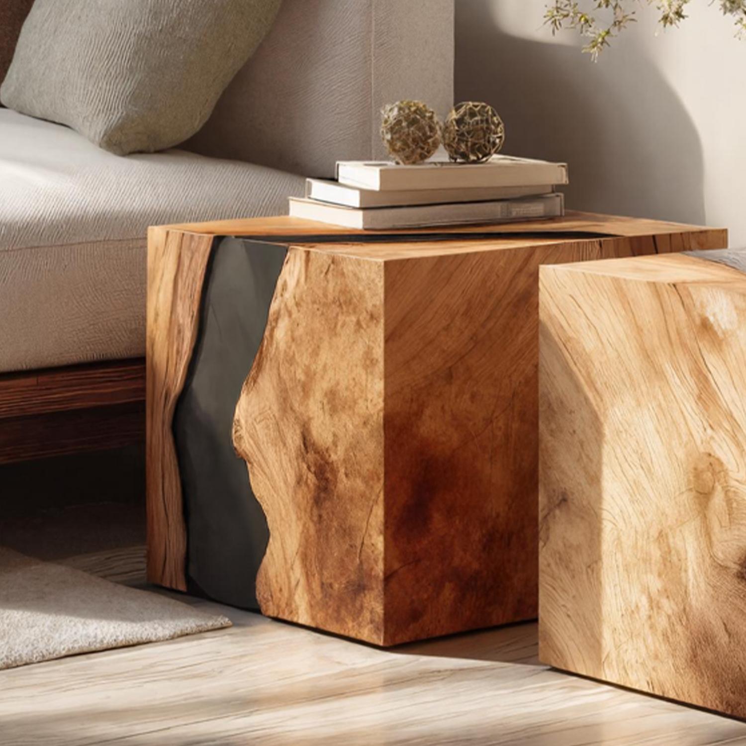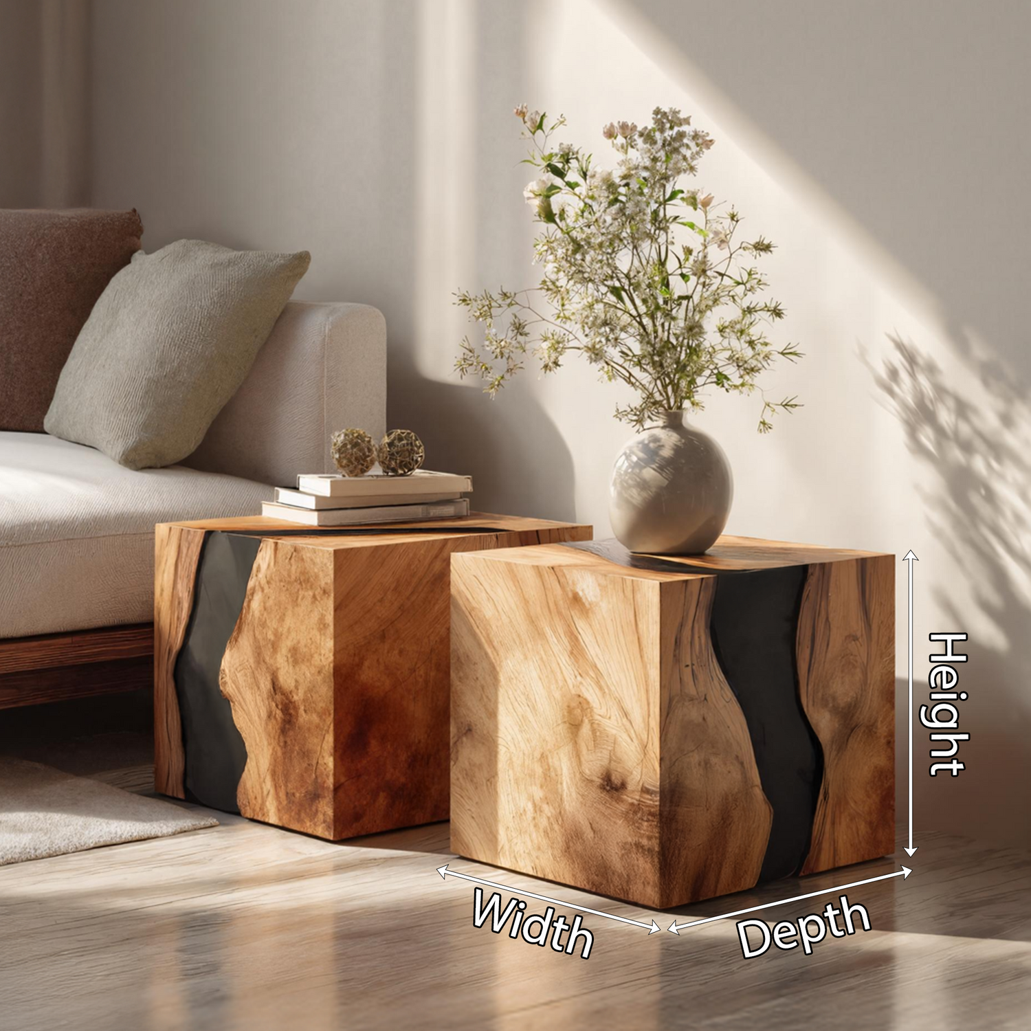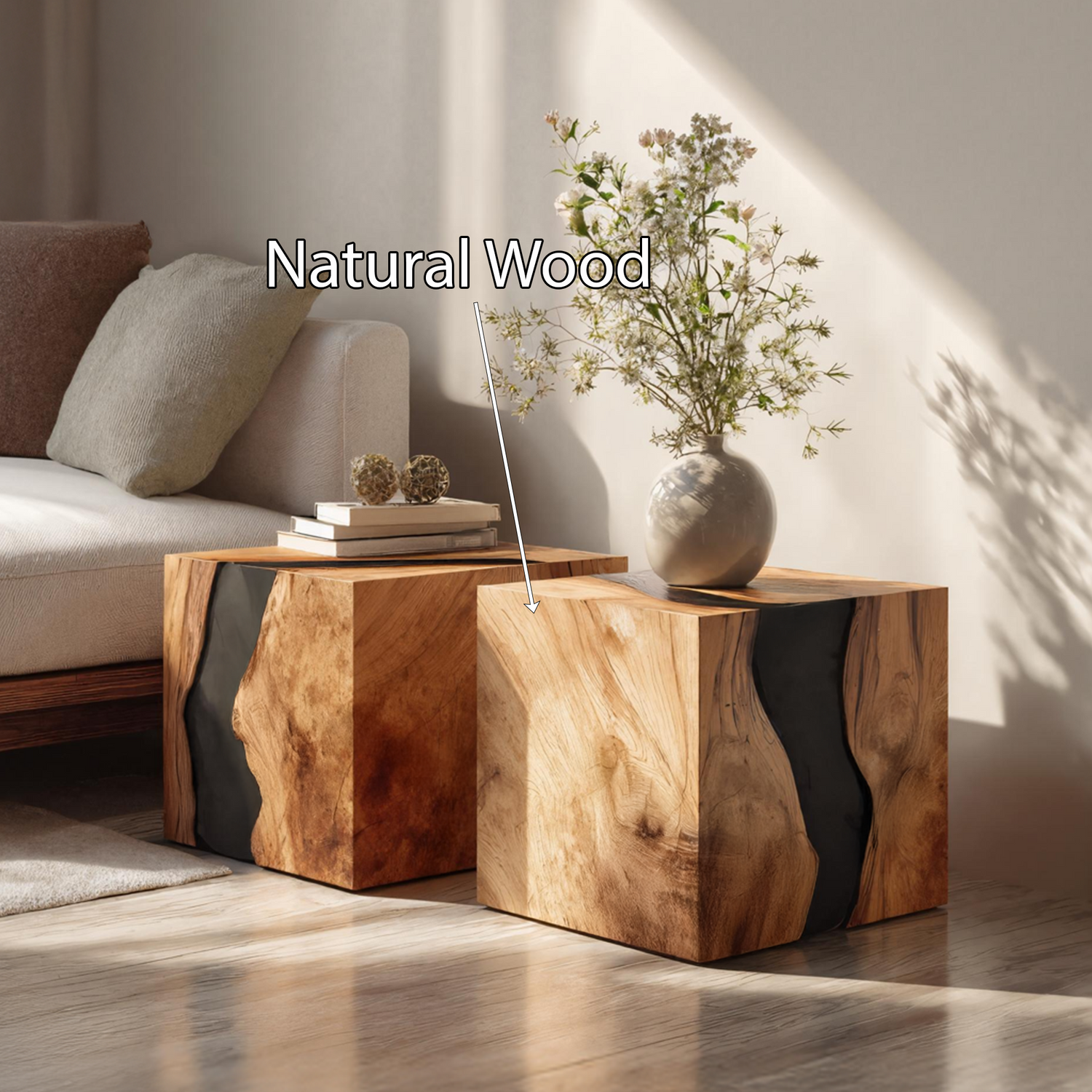 Handcrafted Solid Wood Cube Table For Natural Decor Home