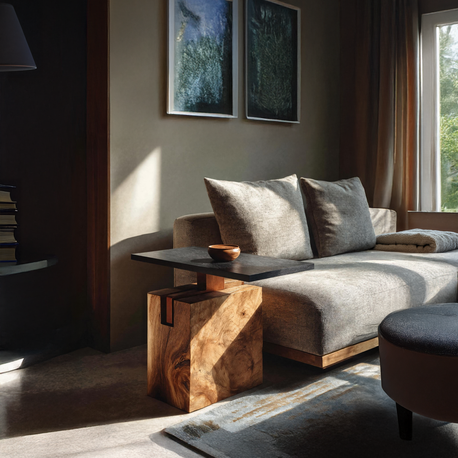 Each table is individually made by skilled artisans, highlighting the natural grain and organic flow of solid wood. Subtle variations in color and form are celebrated, ensuring no two pieces are ever the same.