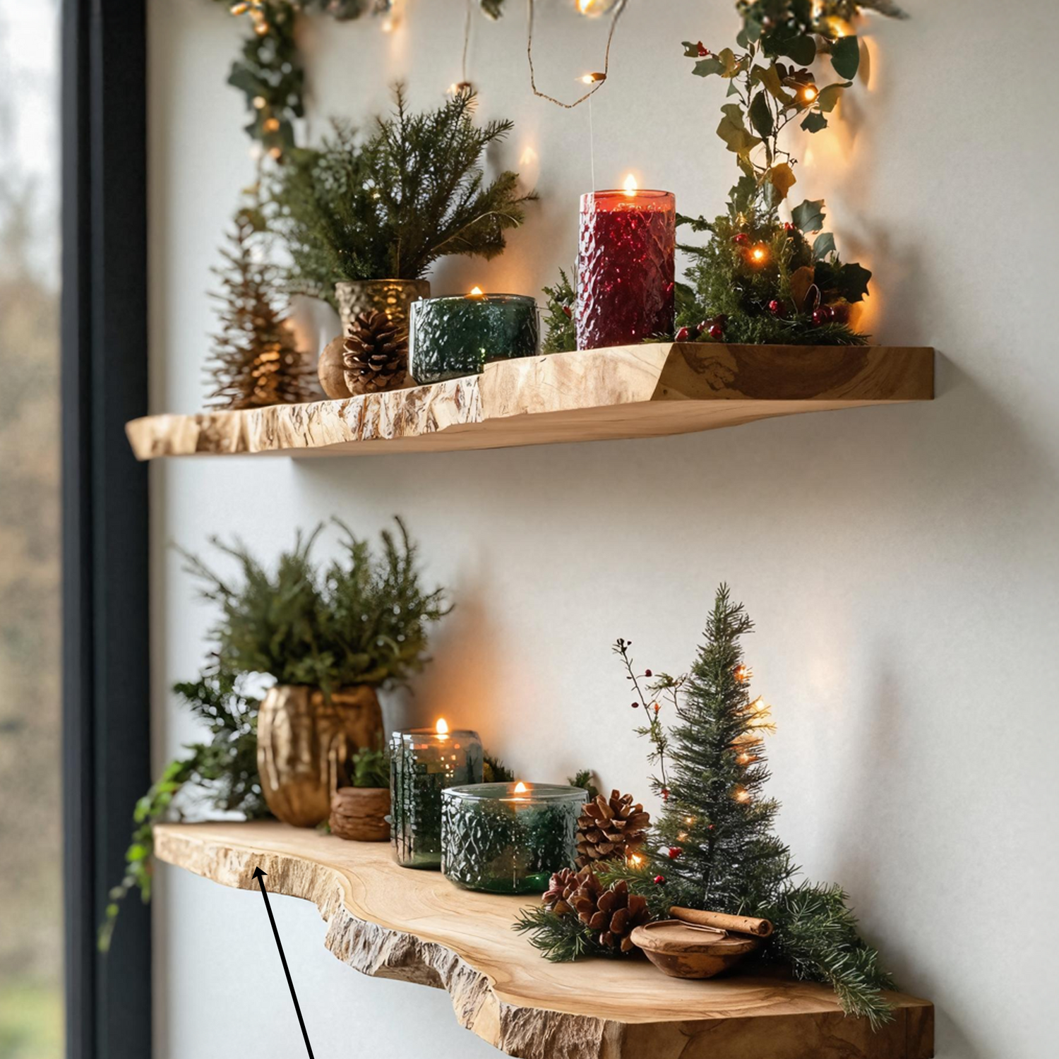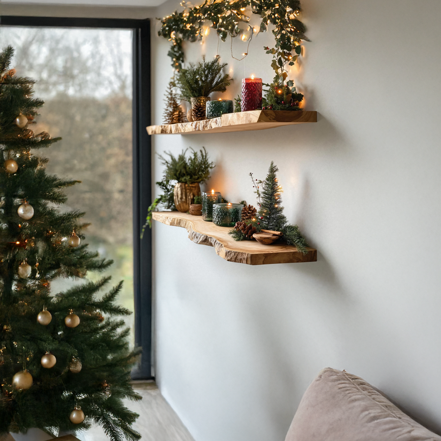 Bring warmth and sophistication to your bedroom with the Handcrafted Solid Wood Floating Shelf For Christmas Bedroom Design. Expertly made from solid wood, this shelf highlights natural texture and timeless craftsmanship. Perfect for displaying candles, ornaments, or festive accents, it offers both style and function while creating a cozy and elegant Christmas atmosphere in your bedroom.