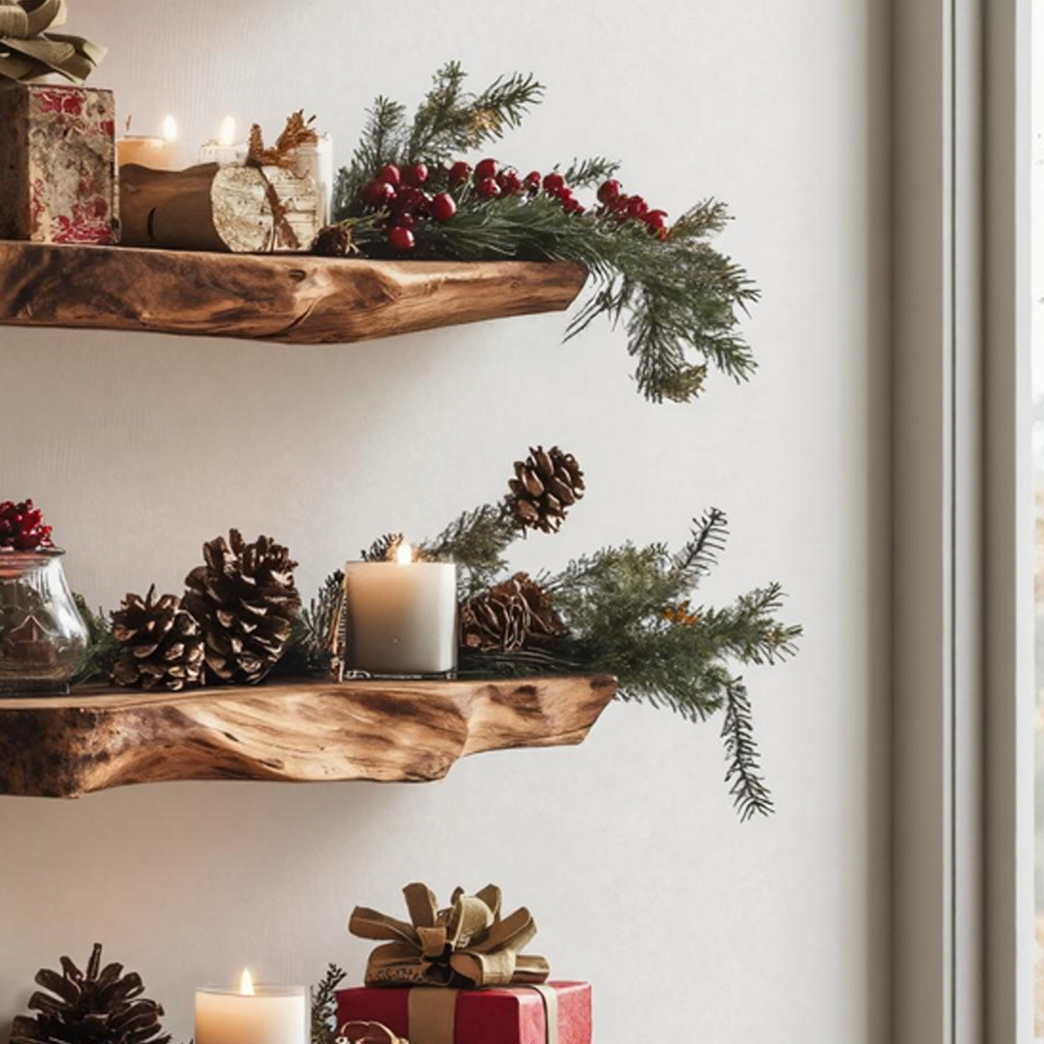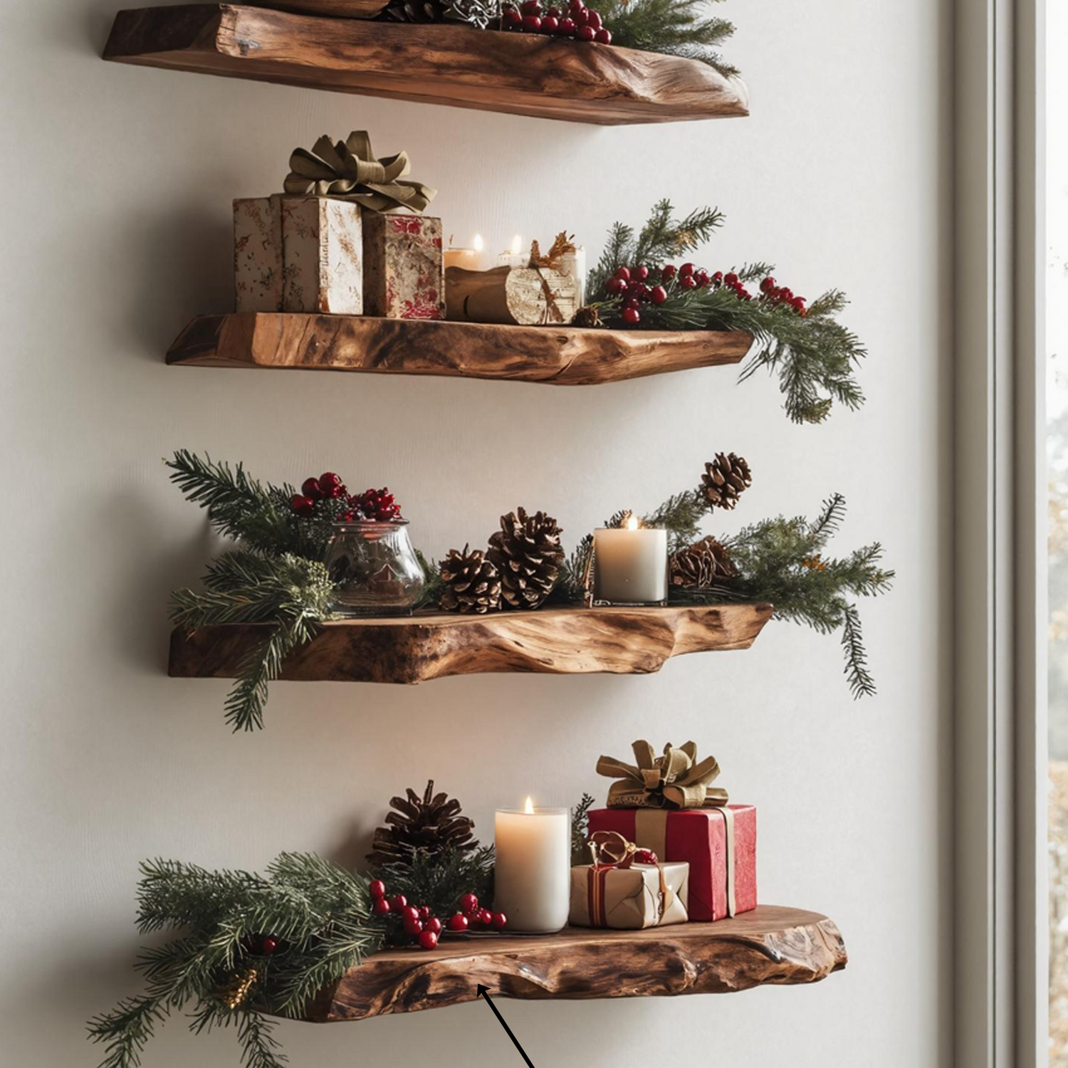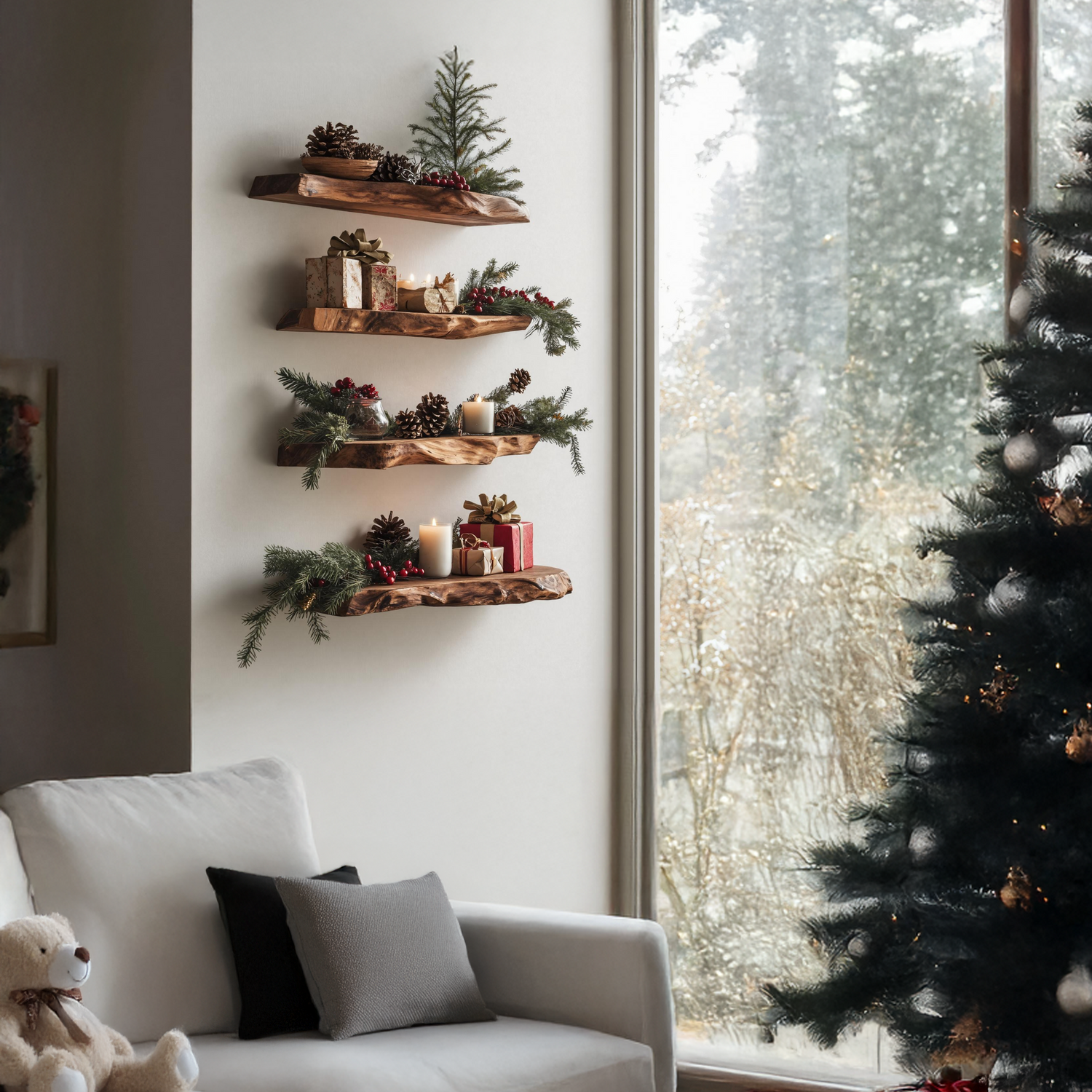 Bring warmth and style to your living room with the Handcrafted Solid Wood Floating Shelf For Cozy Christmas Living Room. Made from premium solid wood, this shelf showcases natural grain patterns and fine craftsmanship, adding both charm and practicality. Ideal for displaying candles, garlands, or festive accents, it creates a cozy and elegant Christmas atmosphere that enhances your holiday décor.