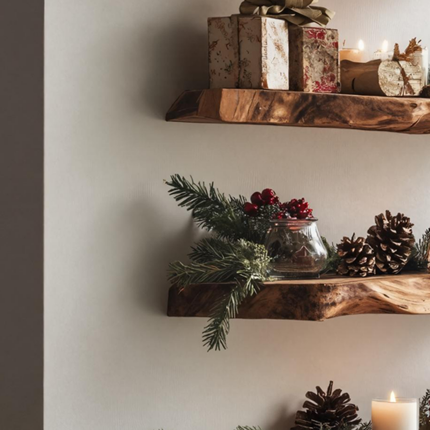 Handcrafted Solid Wood Floating Shelf For Cozy Christmas Living Room