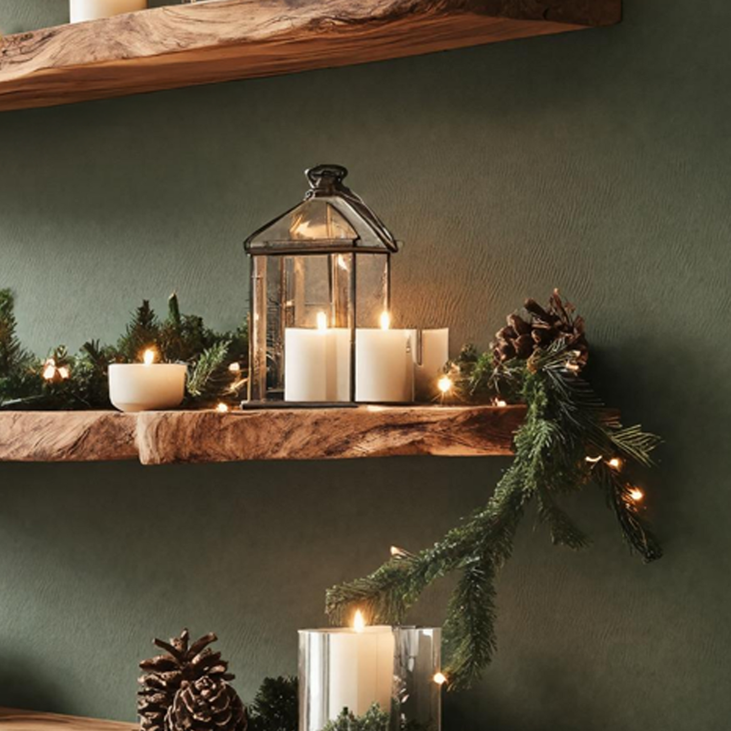 - Displaying ornaments, candles, or Christmas accents in the living room or entryway