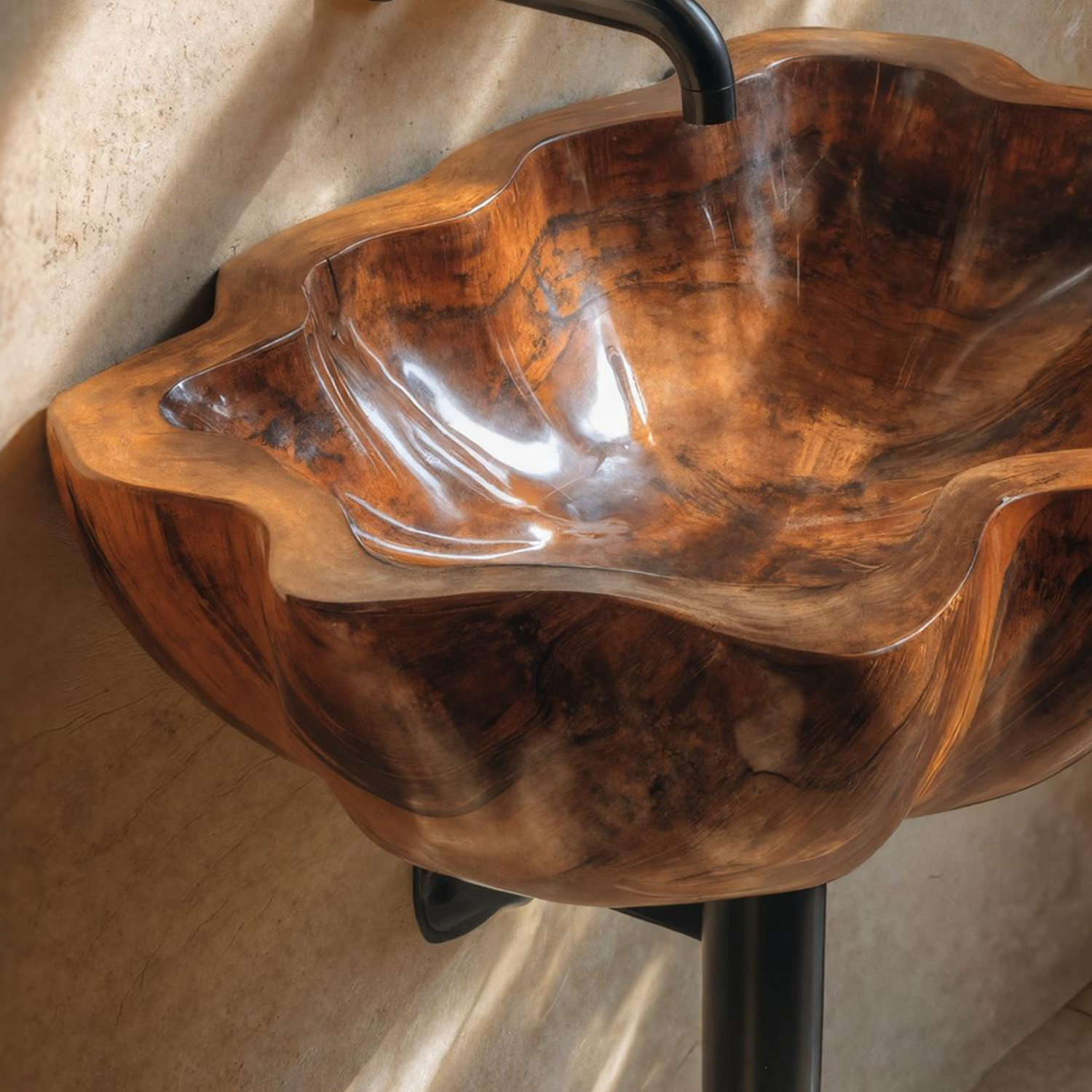 Created for interiors that value form as much as function, Handcrafted Solid Wood Wash Basin For Artistic Bathroom Interior Decor introduces warmth, texture, and a handcrafted look to the vanity. The result feels artistic, yet easy to integrate into everyday bathroom design.