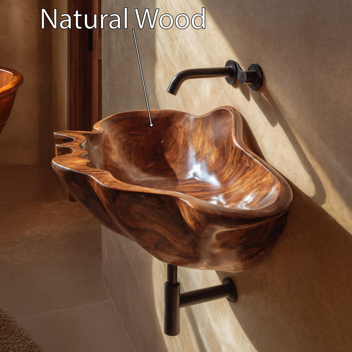 Designed for thoughtfully styled interiors, Handcrafted Solid Wood Wash Basin For Designer Furniture Decor Spaces balances a refined basin form with the organic character of solid wood. The visible grain detail complements minimalist cabinetry and layered materials.