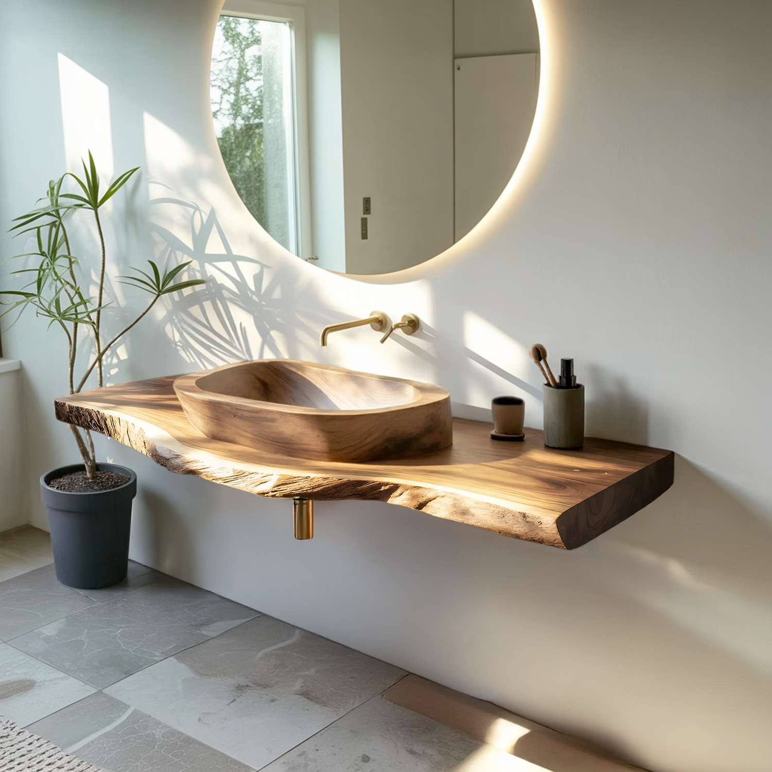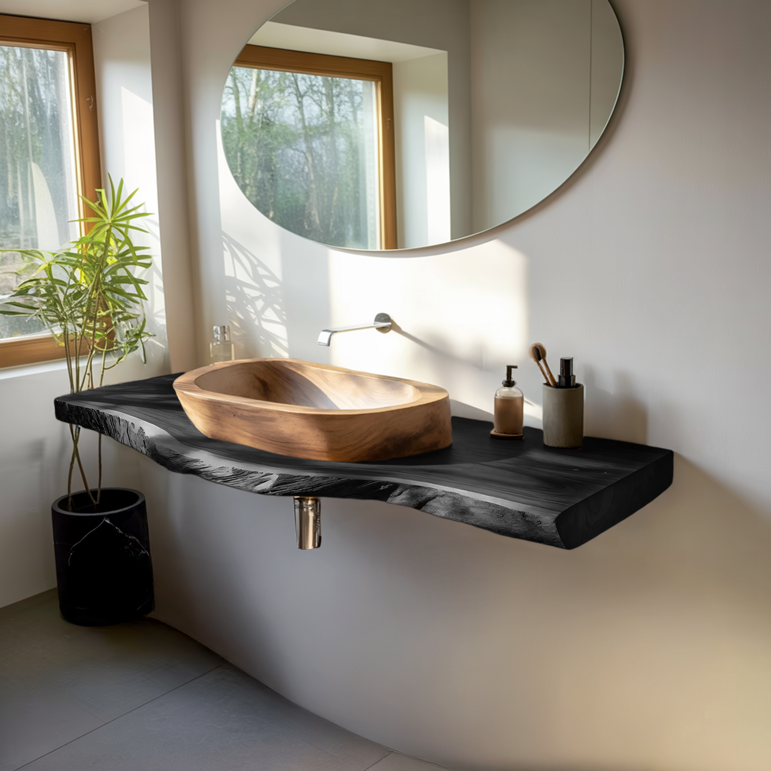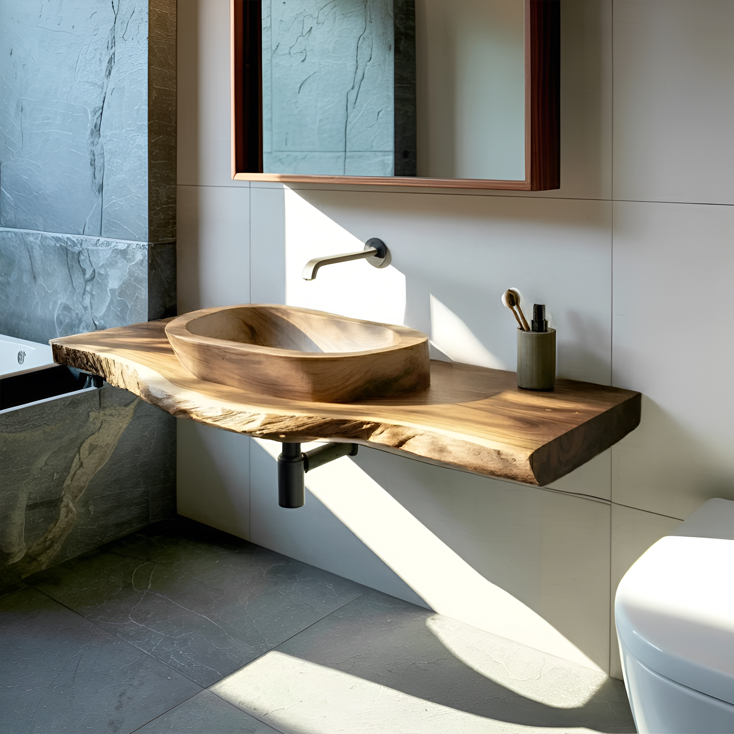 Upgrade your bathroom with the Handcrafted Vanity With Storage For Bathroom Design. Carefully made from solid wood, this vanity blends artisanal detail with everyday practicality. Its floating silhouette helps free up floor space, while the built-in storage keeps essentials organized. With timeless character and handcrafted charm, it becomes both a functional solution and a stylish centerpiece for your bathroom décor.