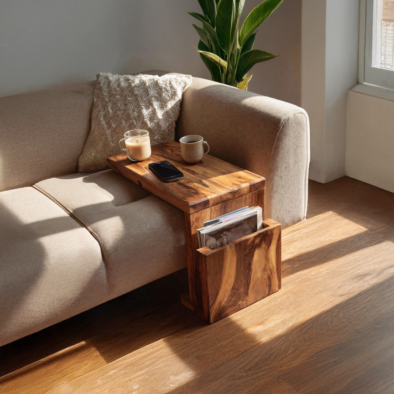 Bring natural warmth to your space with the Handcrafted Wooden Armrest For Living Room Design. Made from solid wood with smooth, artisan detailing, this armrest adds both comfort and style to your sofa setup. Perfect for holding drinks, books, or small essentials, it enhances your living room with a simple, functional, and beautifully crafted accent.