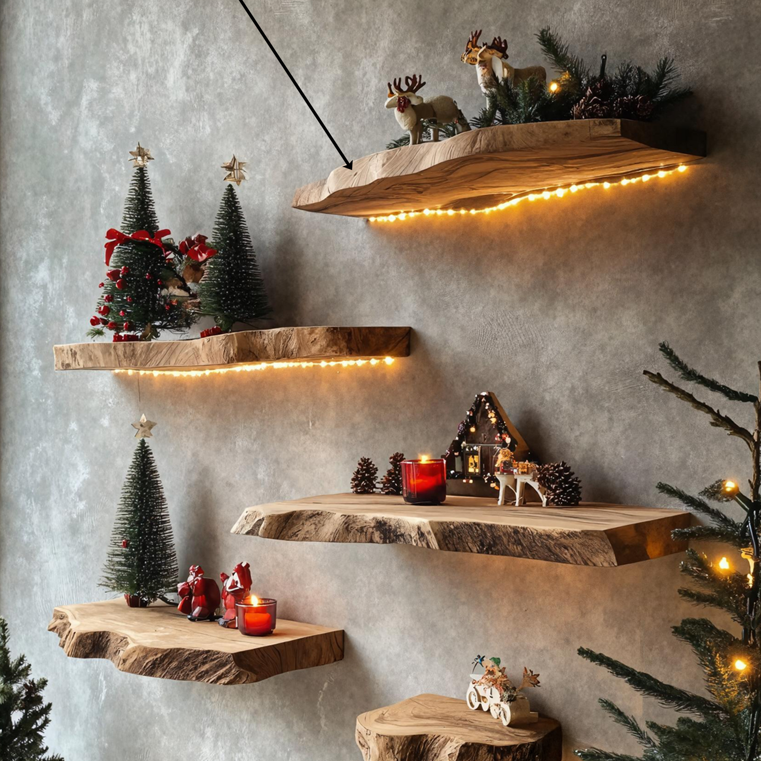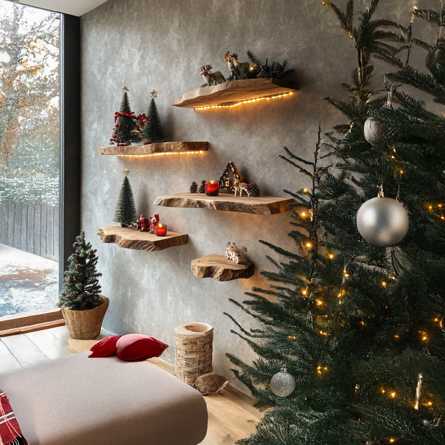 - Displaying ornaments, candles, or Christmas accents in the living room or entryway
