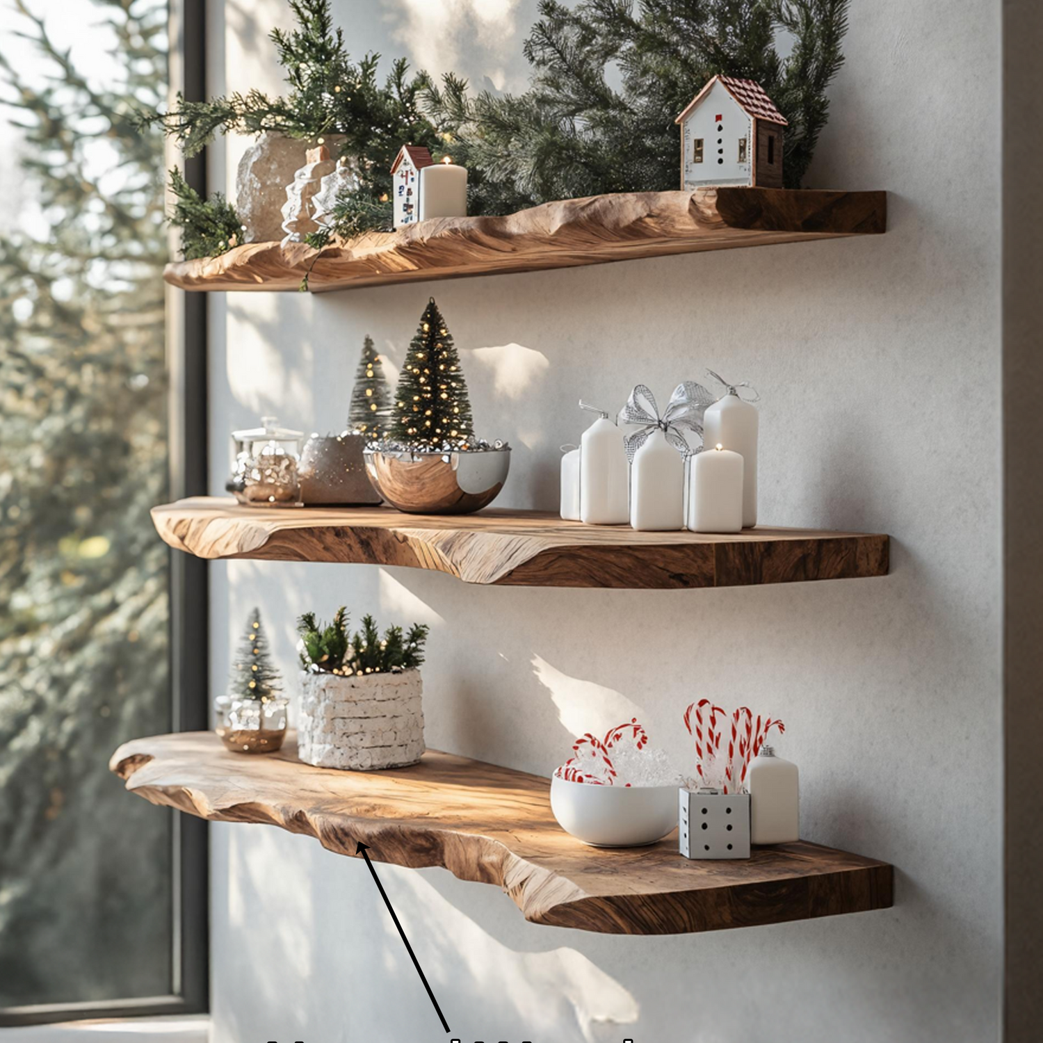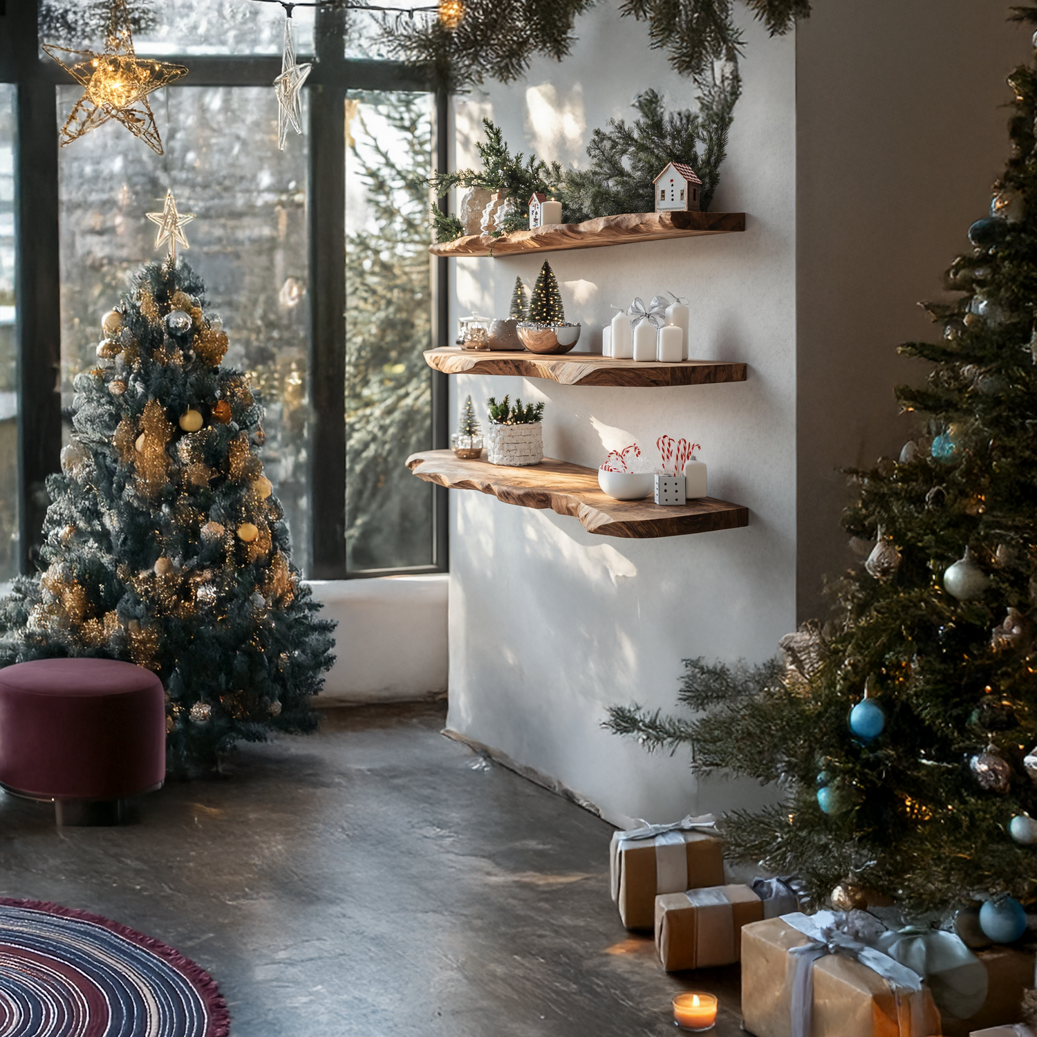 Handcrafted Wooden Floating Shelf For Stylish Christmas Bedroom Decor