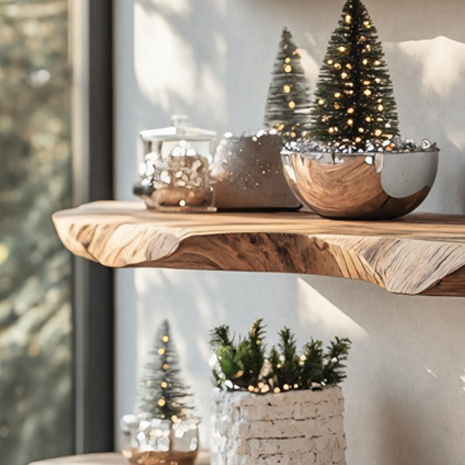 - Displaying ornaments, candles, or Christmas accents in the living room or entryway
