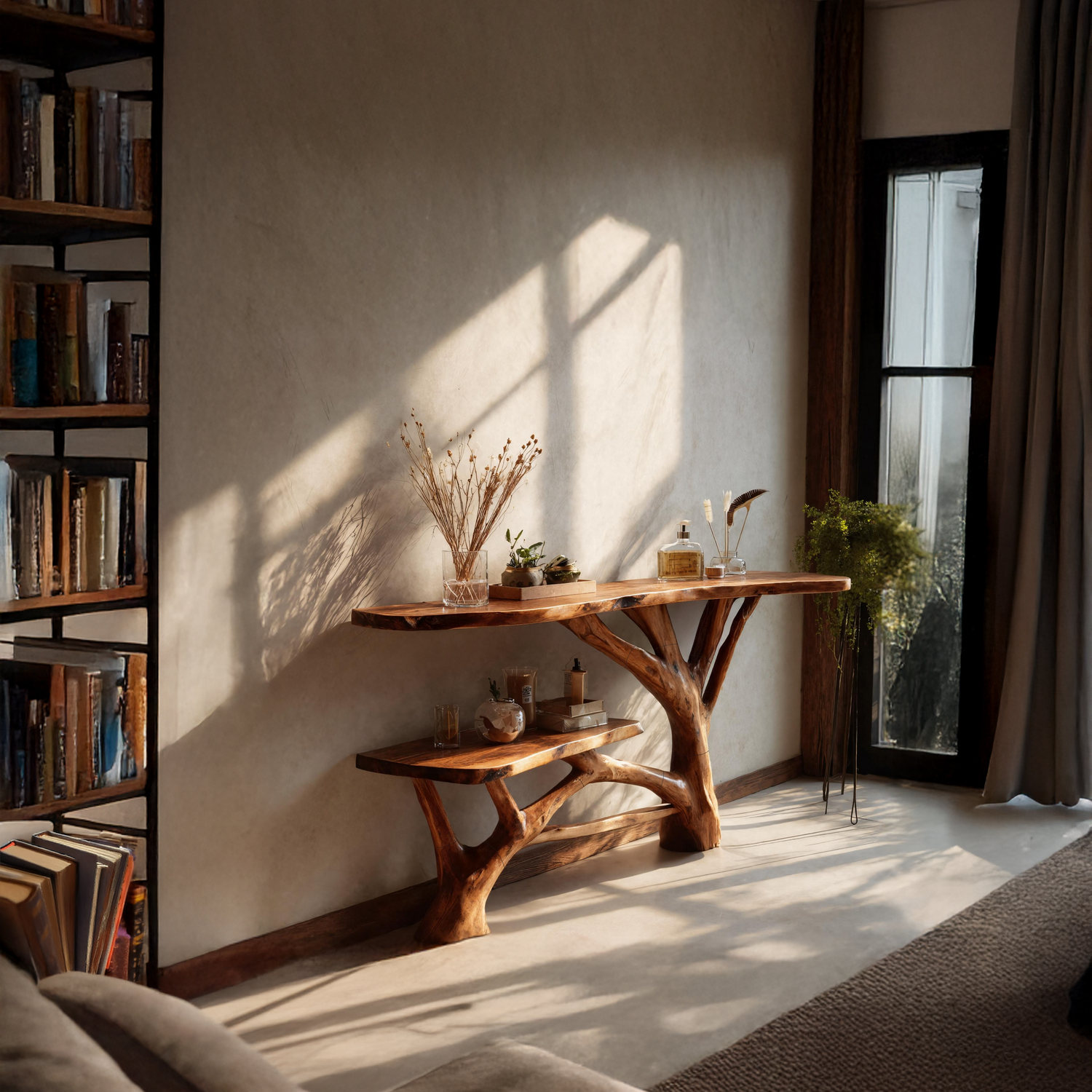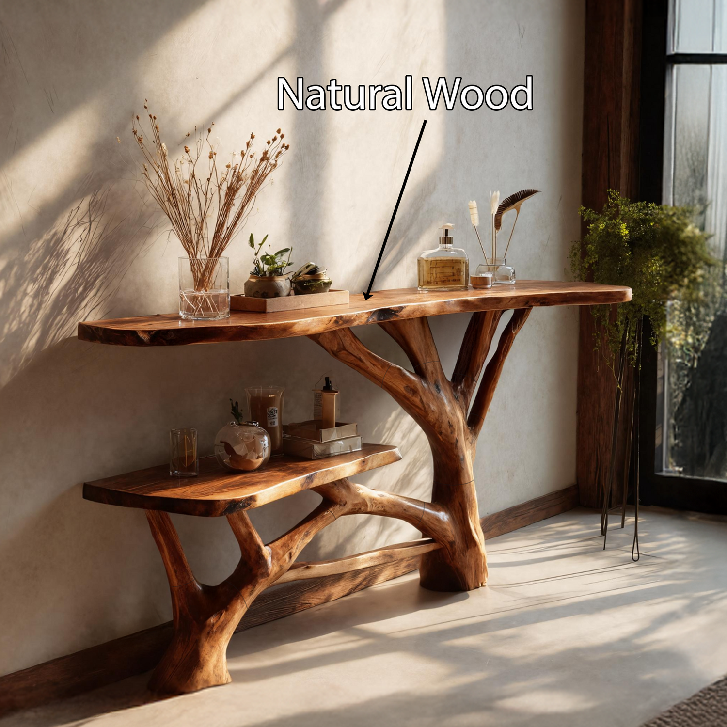 Elevate your interior with the Handcrafted Wooden Live Edge Console Table For Contemporary Furniture Decor. Carefully made from solid wood, this console table features a striking live edge design that celebrates the beauty of natural grain and texture. Its sleek, handcrafted form blends organic artistry with modern sophistication, making it a perfect accent for contemporary interiors. Ideal for displaying décor, organizing essentials, or adding a statement piece, it brings warmth, style, and craftsmanship to any space.
