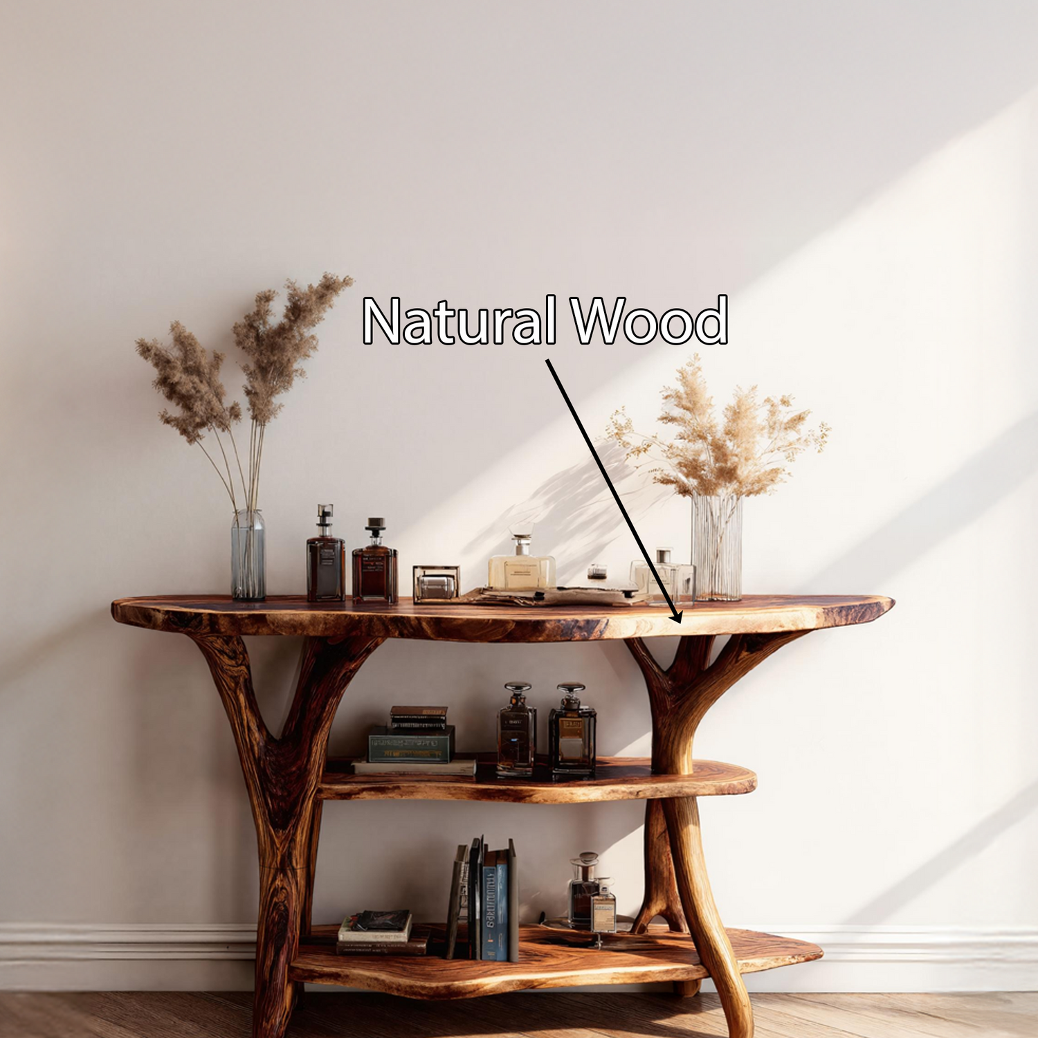 Made entirely from solid wood, every console table reflects the unique story of the material it’s built from. No two pieces are ever identical—each features distinct knots, color variations, and grain patterns that showcase the raw beauty of nature. This handcrafted quality ensures durability and authenticity, elevating it beyond a simple piece of furniture into a work of natural art.