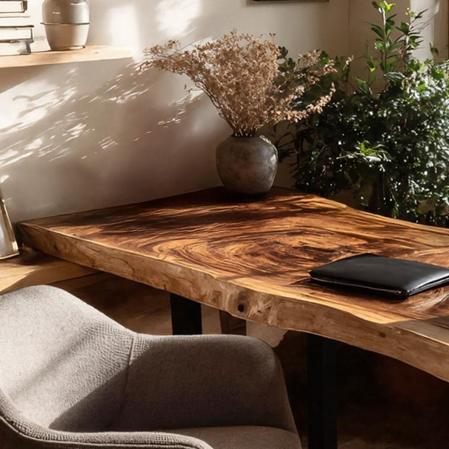 Enhance your living space with this Handcrafted Wooden Live Edge Desk For Furniture Decor, designed to emphasize the organic lines and natural beauty of solid monkey pod wood. Its flowing live edges, warm grain patterns, and sculptural presence bring a refined yet inviting atmosphere to your home. Whether used for work, study, or display, this desk serves as both a functional workspace and an elegant decorative centerpiece, harmonizing effortlessly with modern, rustic, or minimalist interiors.