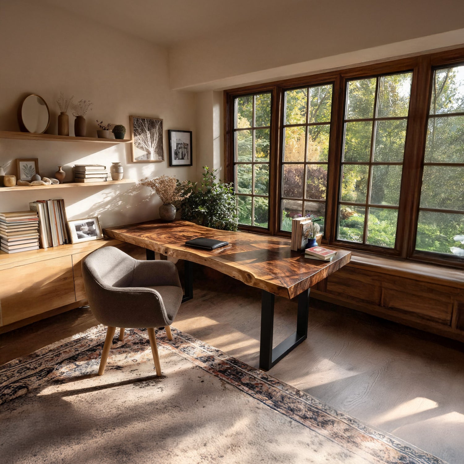 Handcrafted Wooden Live Edge Desk For Furniture Decor