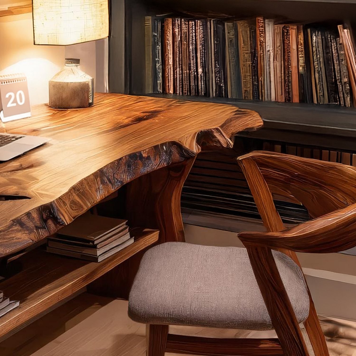 Introduce a touch of natural character to your home with our Handcrafted Wooden Live Edge Desk For Living Room Interior, designed to create a warm, grounded workspace that blends seamlessly into contemporary and cozy environments alike. Its organic edge detail and thoughtfully shaped wooden surface bring subtle visual interest, allowing the piece to anchor your living room with quiet sophistication.