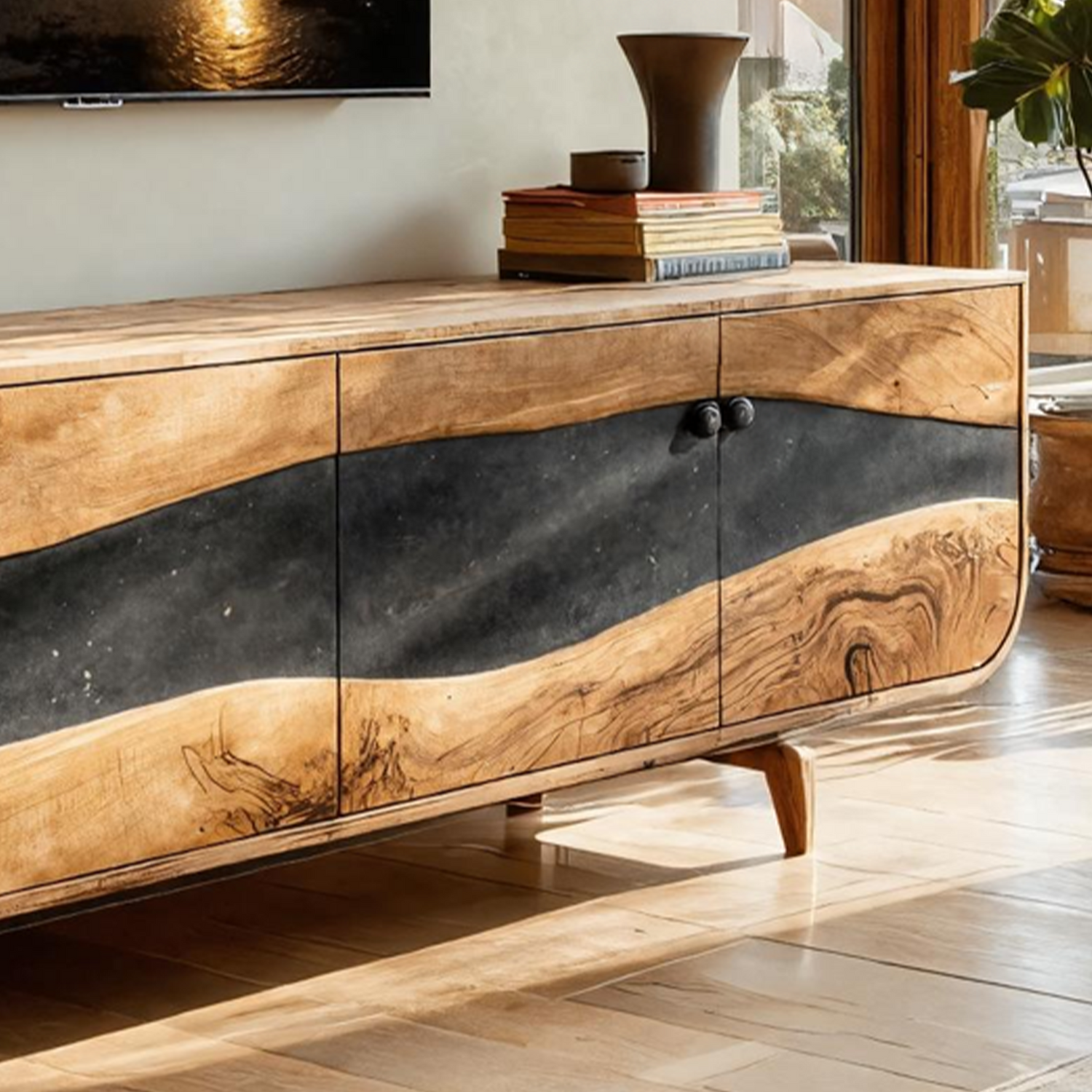 Handcrafted Wooden Live Edge TV Stand For Furniture Decor