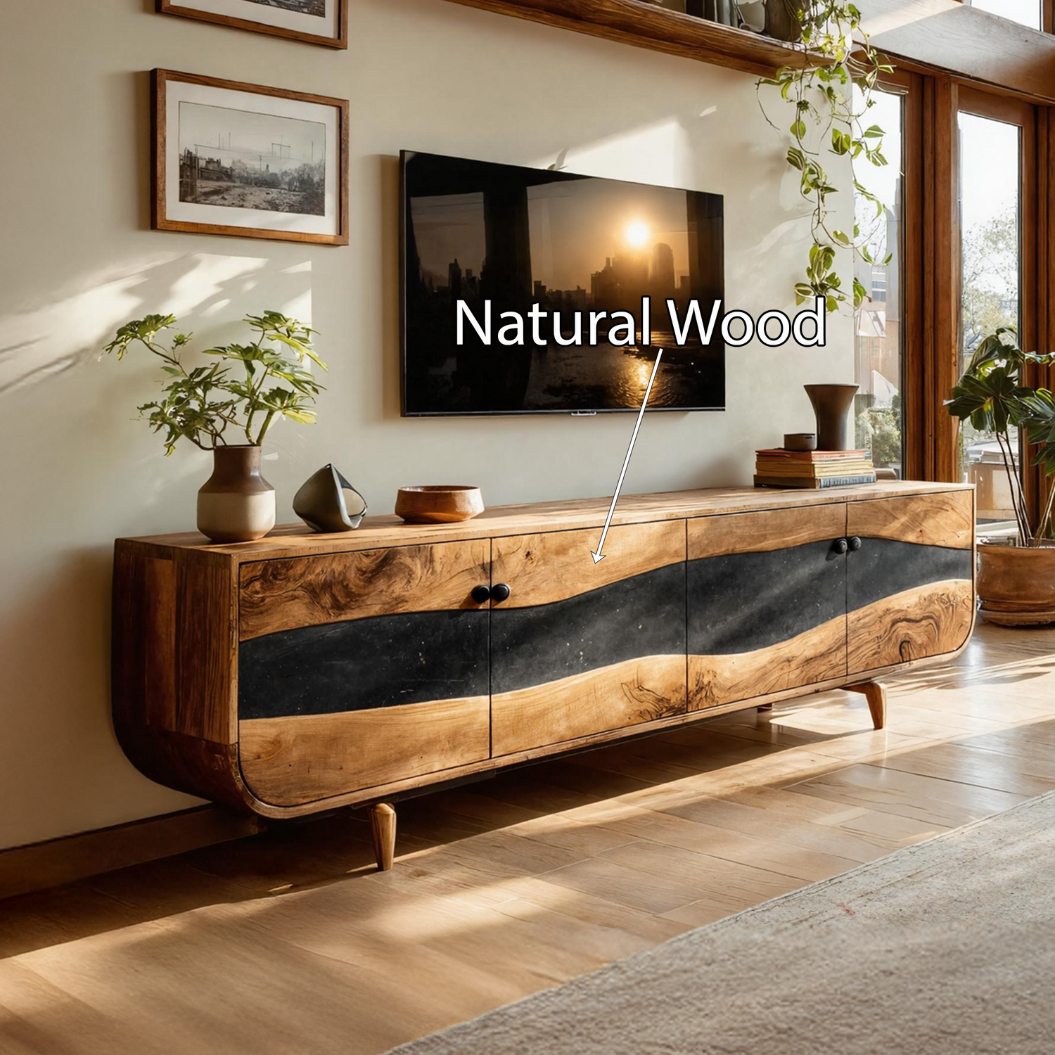 Enhance your home with the Handcrafted Wooden Live Edge TV Stand For Furniture Decor, a naturally inspired piece that adds warmth, texture, and functional elegance to any setting. Designed with an open structure and organic live-edge details, it brings both visual charm and everyday practicality to your space.