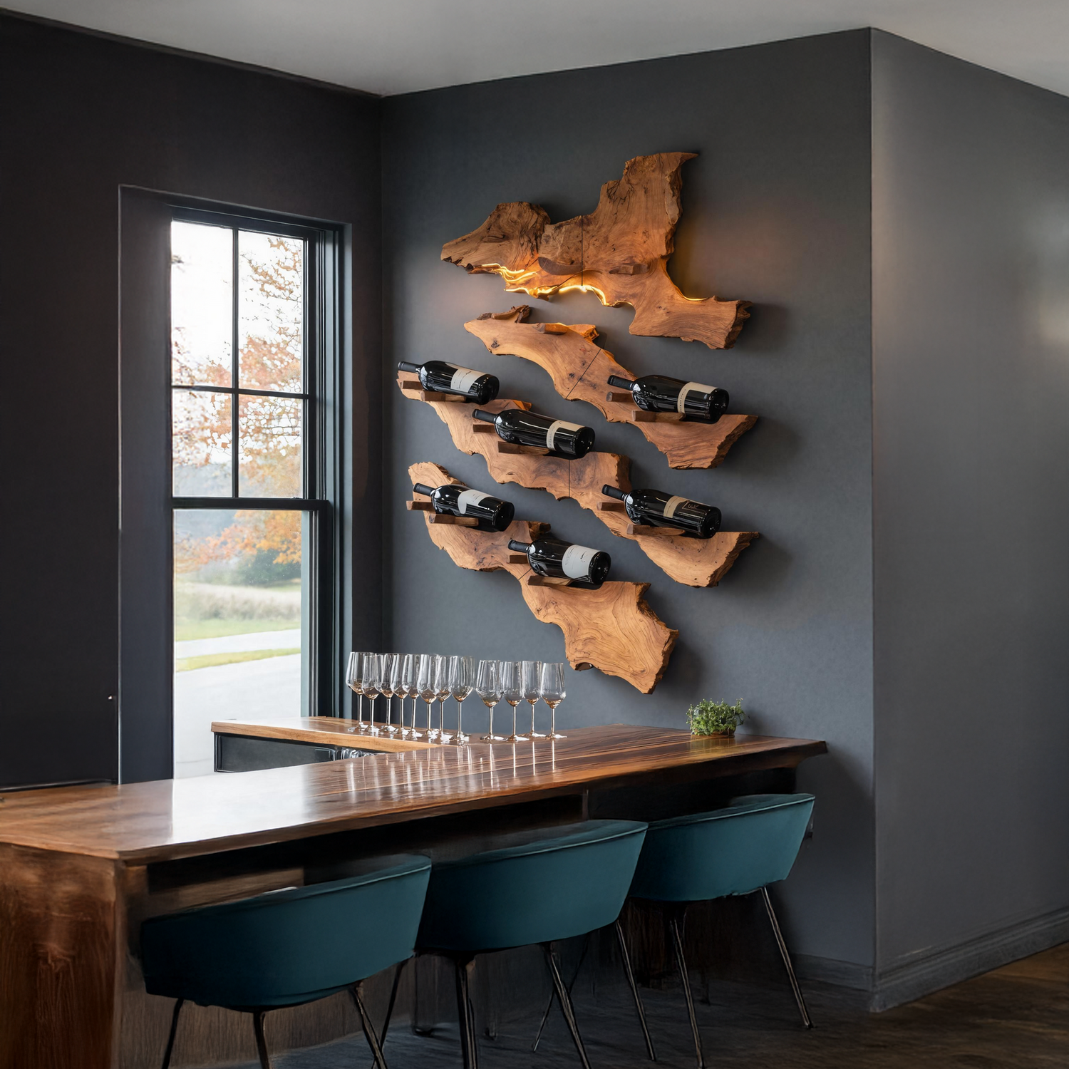 Handcrafted Wooden Live Edge Wine Holder For Bar Decor Ideas